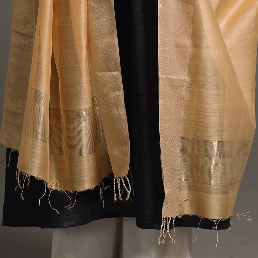 This peach Maheshwari silk-cotton handloom dupatta with tassels is a masterpiece of traditional weaving techniques passed down through generations of skilled artisans in Maheshwar. Its lightweight, sheer texture exudes unparalleled elegance, adding grace to any attire. With its exquisite craftsmanship and delicate tassels, this dupatta is a must-have for anyone who appreciates the art of handloom weaving.