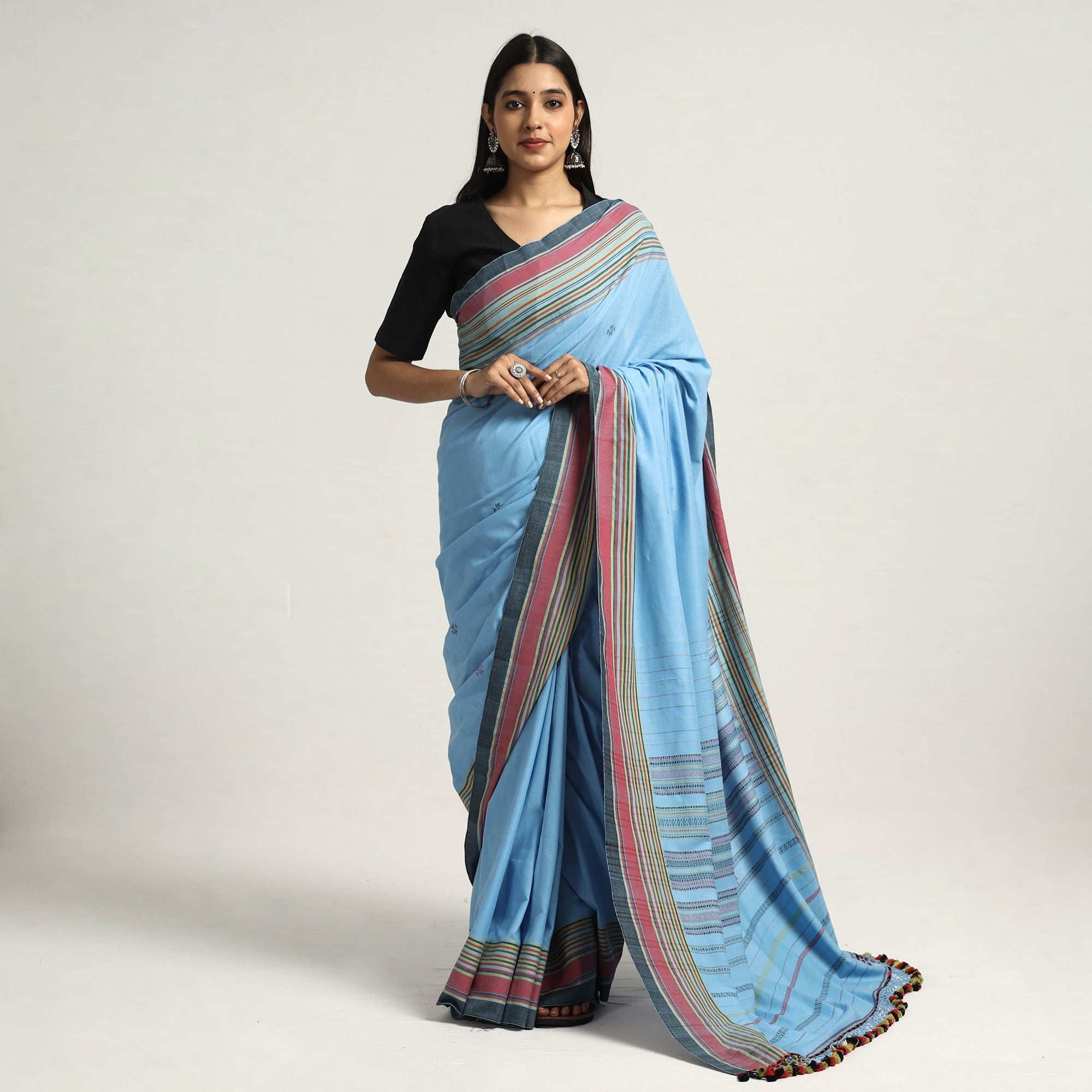 Fine quality kutch bhujodi Handloom cotton saree with tassels. This saree is made with 100% certified organic cotton with azo free dye colours. 'Bhujodi' weaving is a craft that takes its name from 'Bhujodi', a small village in 'Kutch' where this craft is practiced. This village of weavers is famous for its exquisitely woven traditional.