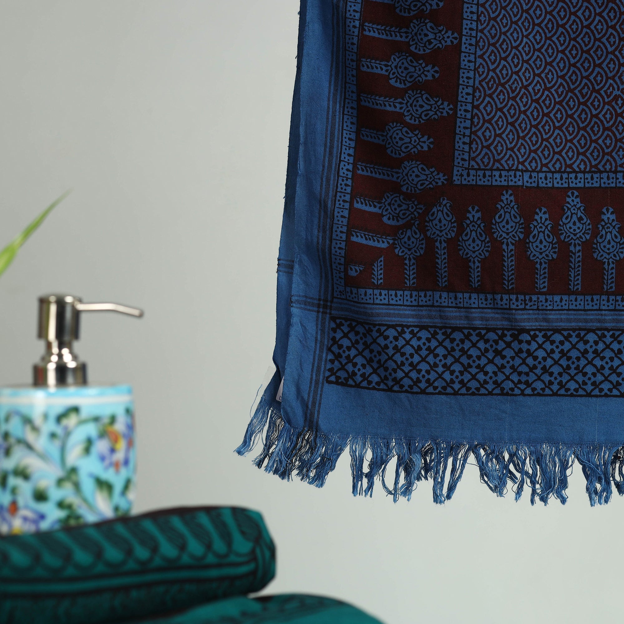 Indulge in the soft comfort and artistic beauty of the fine quality bagh hand block printed pure handloom cotton towel. This exquisite towel is meticulously crafted using traditional techniques by master artisan Umar Faruk Khatri, who practices the art of bagh hand block printing in Bagh, the Dhar district of Madhya Pradesh.