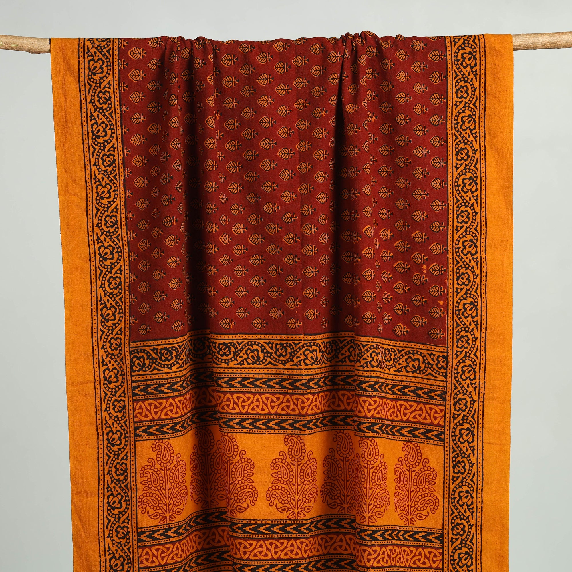 Indulge in the soft comfort and artistic beauty of the fine quality orange bagh hand block printed pure handloom cotton towel. This exquisite towel is meticulously crafted using traditional techniques by master artisan Umar Faruk Khatri, who practices the art of bagh hand block printing in Bagh, the Dhar district of Madhya Pradesh.