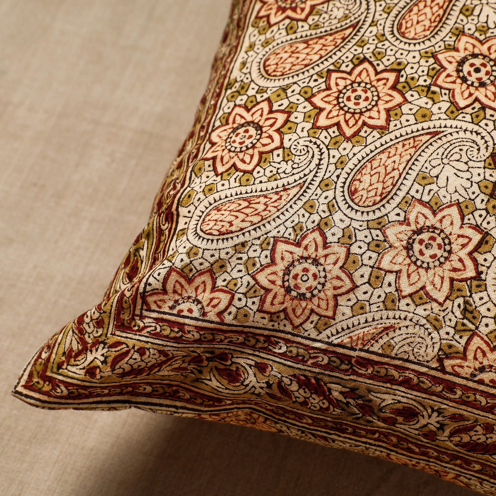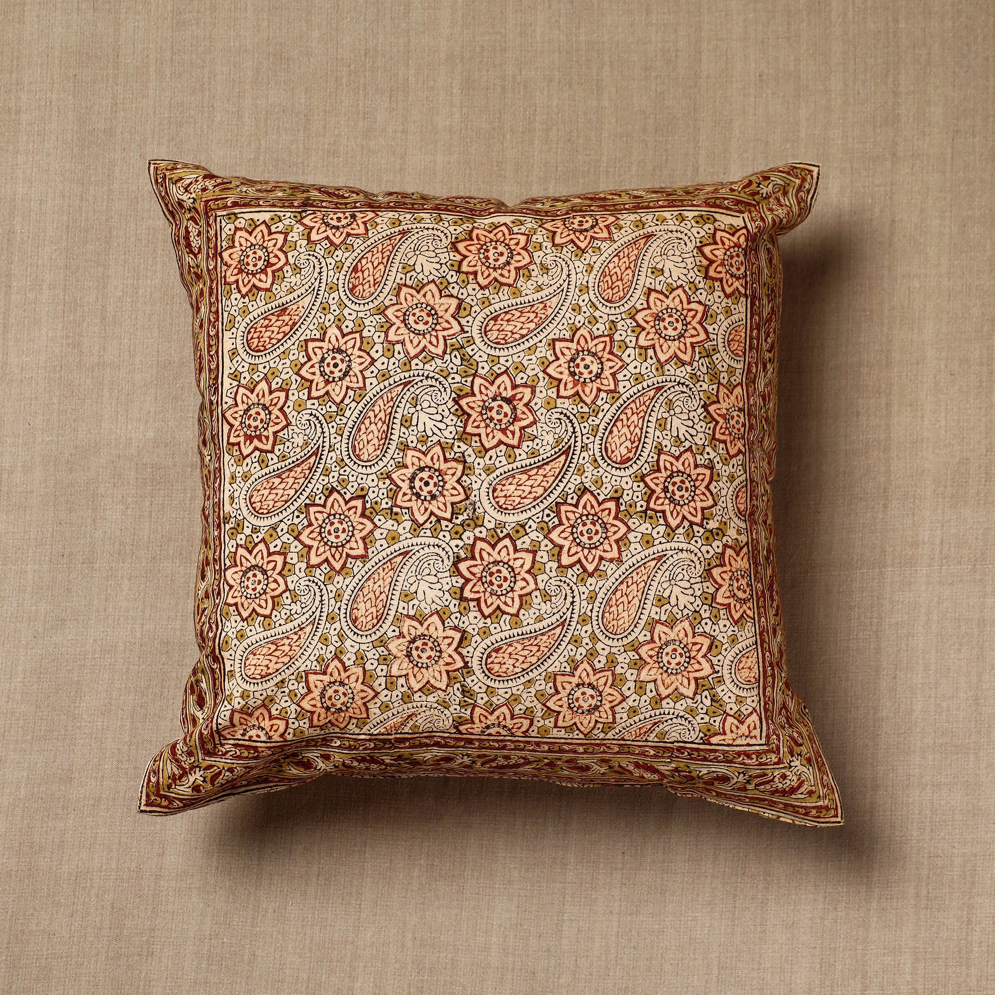 Beautiful cushion cover made of fine quality cotton fabric that has been skillfully block printed by the artisans of Pedana using the traditional technique of kalamkari. The cover features an assortment of hand block printed motifs that are inspired by the traditional kalamkari paintings. Kalamkari is one of the oldest and most complex techniques of block printing, and this cushion cover is a great example of the exquisite craftsmanship that goes into creating such works of art. It will make a wonderful addition to any home decor, adding a touch of traditional elegance and charm.