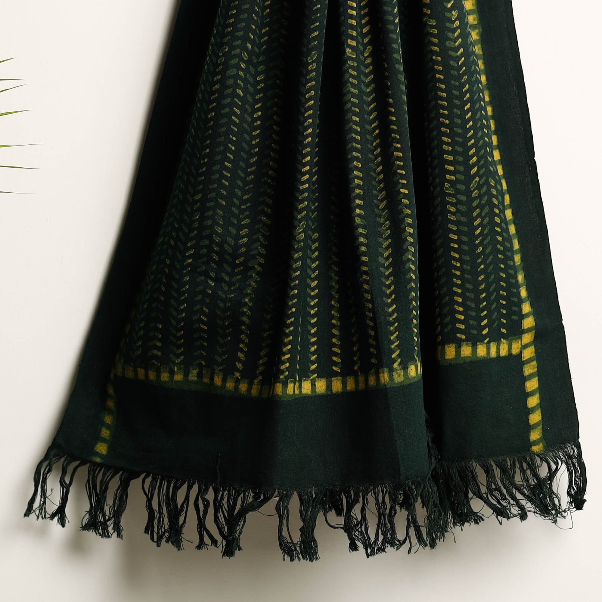This is a fine-quality green pure handloom cotton towel that has been hand block printed using natural dyes. The traditional process of hand block printing has been practiced in the Akola village of Rajasthan. The pure handloom fabric used in this towel has been woven in Jhiri, Rajasthan. The towel is not only beautiful but also eco-friendly as it has been made using natural dyes. The hand block printing adds an artisanal touch to the towel making it a perfect addition to any bathroom.