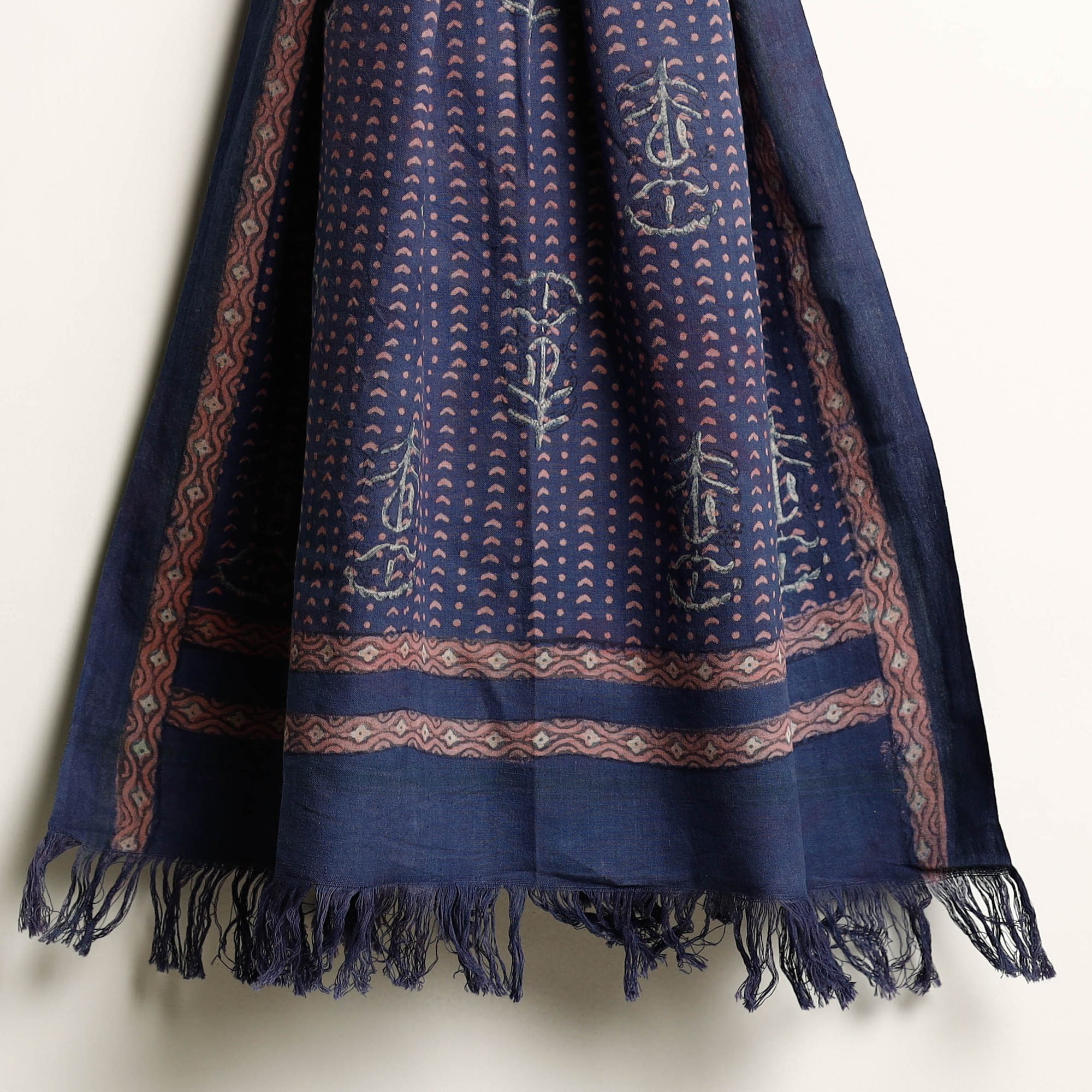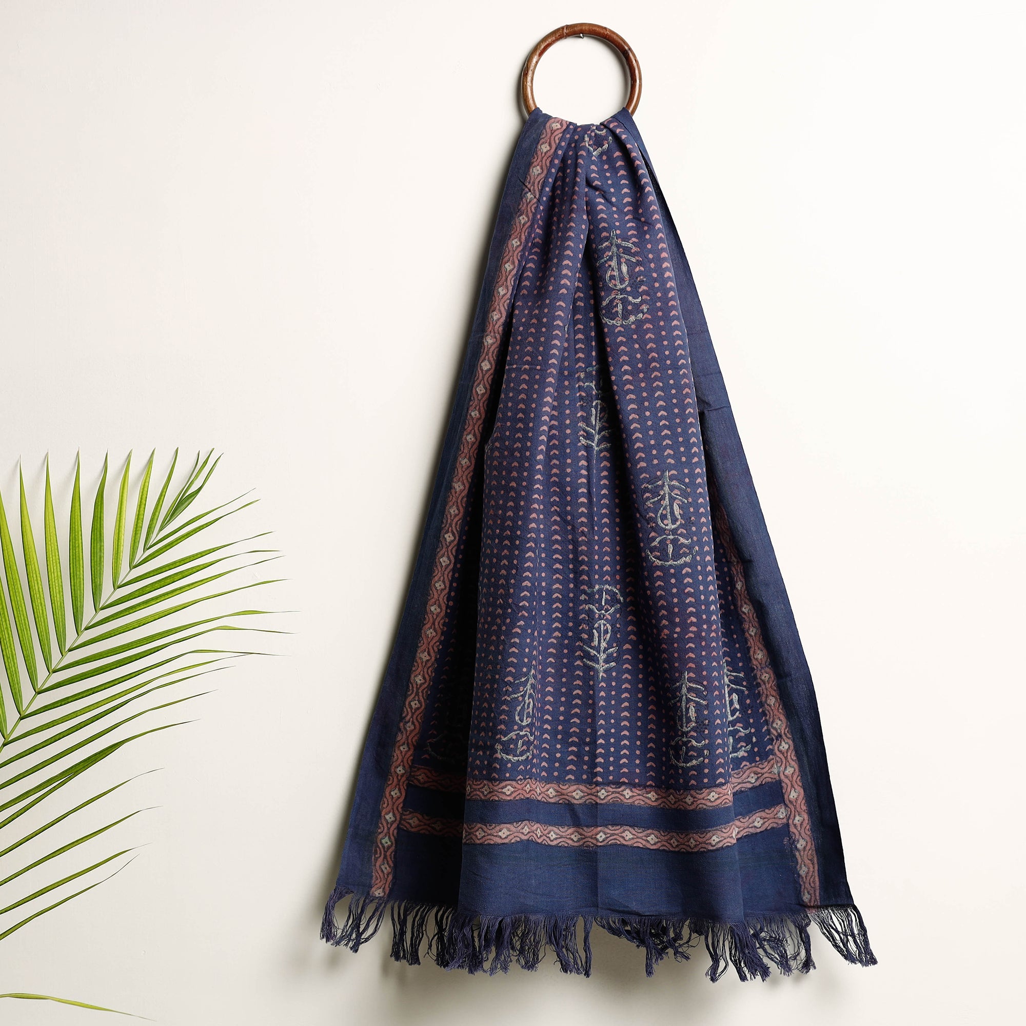 This is a fine-quality blue pure handloom cotton towel that has been hand block printed using natural dyes. The traditional process of hand block printing has been practiced in the Akola village of Rajasthan. The pure handloom fabric used in this towel has been woven in Jhiri, Rajasthan. The towel is not only beautiful but also eco-friendly as it has been made using natural dyes. The hand block printing adds an artisanal touch to the towel making it a perfect addition to any bathroom.