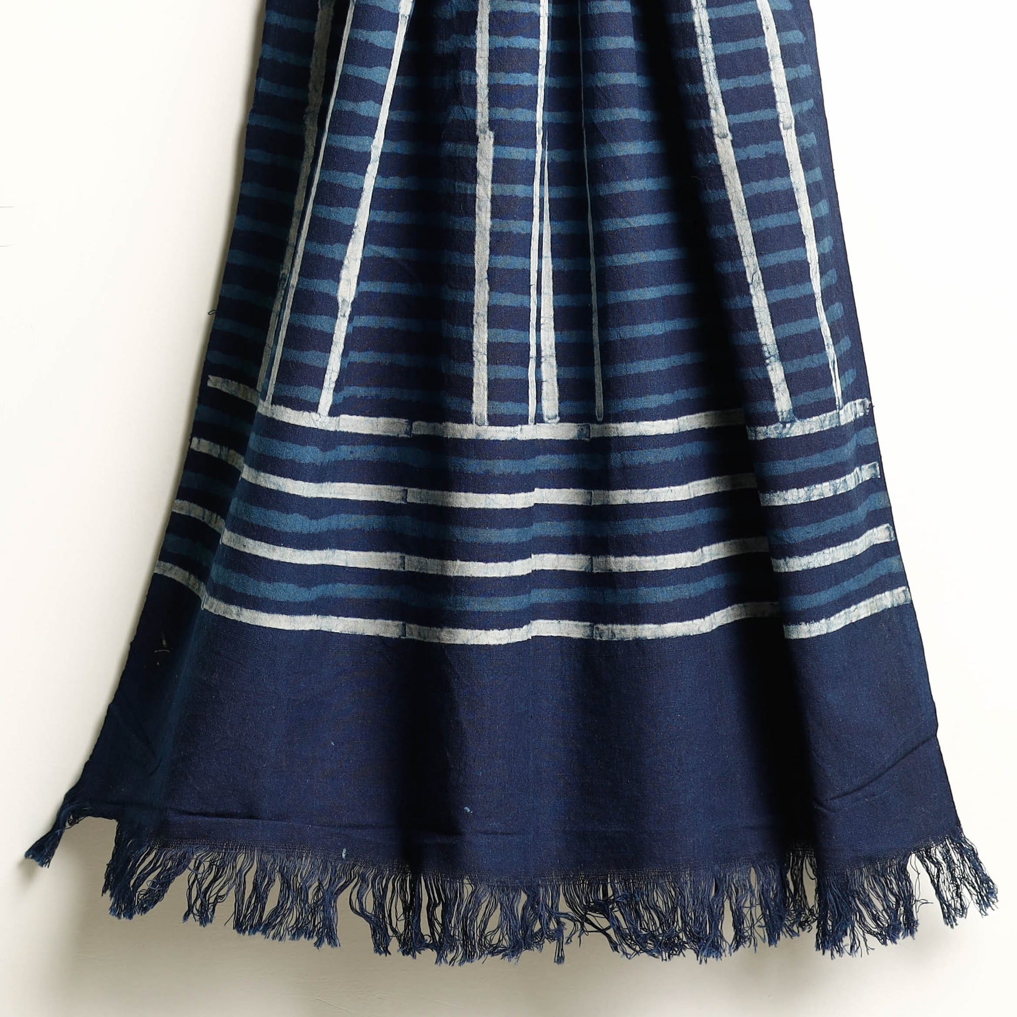 This is a fine-quality blue pure handloom cotton towel that has been hand block printed using natural dyes. The traditional process of hand block printing has been practiced in the Akola village of Rajasthan. The pure handloom fabric used in this towel has been woven in Jhiri, Rajasthan. The towel is not only beautiful but also eco-friendly as it has been made using natural dyes. The hand block printing adds an artisanal touch to the towel making it a perfect addition to any bathroom.