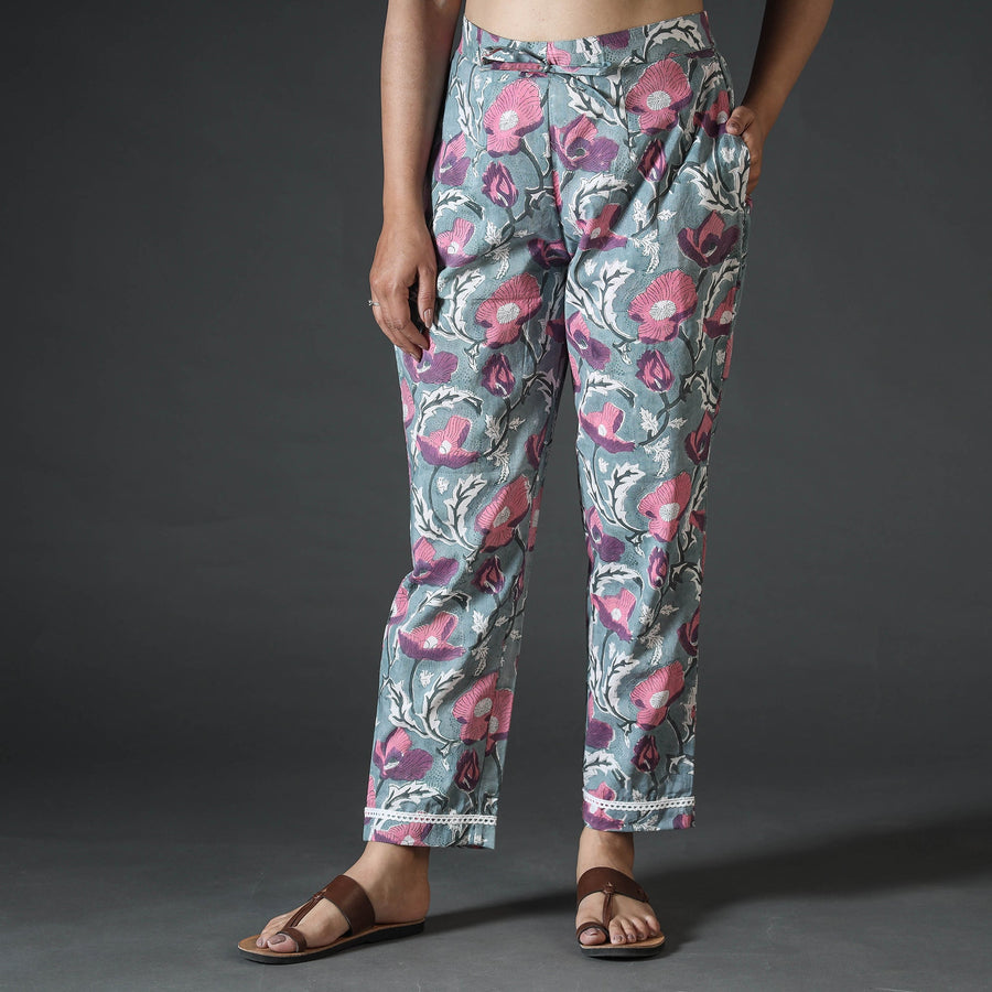 Stay comfortable and stylish in this sanganeri hand block-printed cotton casual pant. This cotton pant features an elasticized waist with a drawstring element that adds to the comfort quotient. The two side pockets add functionality to this pant. The unique hand-block printing technique originating from Sanganer adds a touch of cultural heritage to your look. Bleed-free VAT dyes are used to ensure the color stays vibrant.