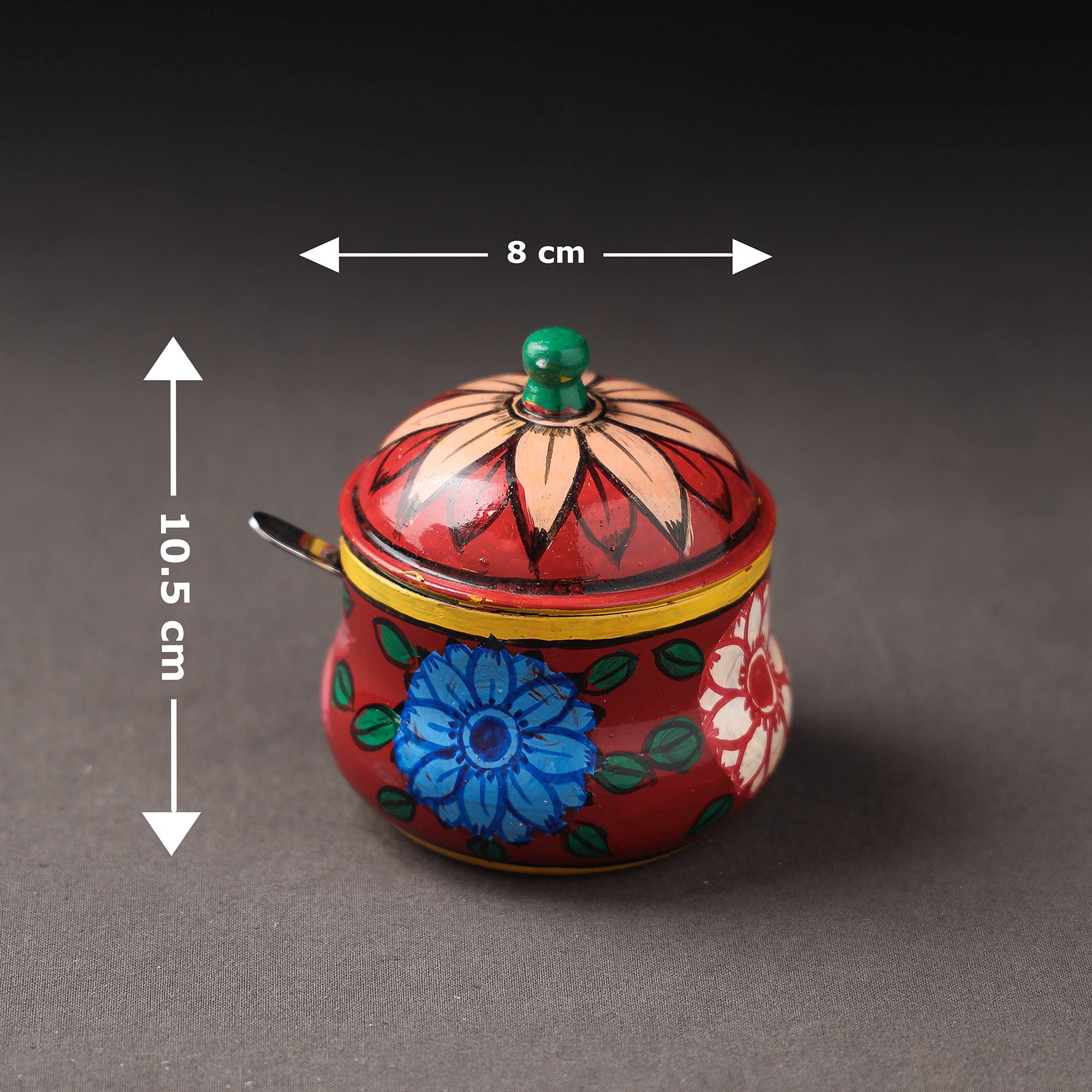 | Material | The Kavad handpainted stainless steel ghee pot is a high-quality kitchen accessory made by skilled artisans from Mewar, Rajasthan. It is crafted from stainless steel and features waterproof oil-based paint, ensuring durability and longevity. The pot comes with a small spoon and is ideal for storing and serving ghee. The traditional design of the pot adds a touch of India to your kitchen, making it both practical and beautiful. It is perfect for those who love traditional Indian kitchenware and want to incorporate it into their daily cooking routine. |
