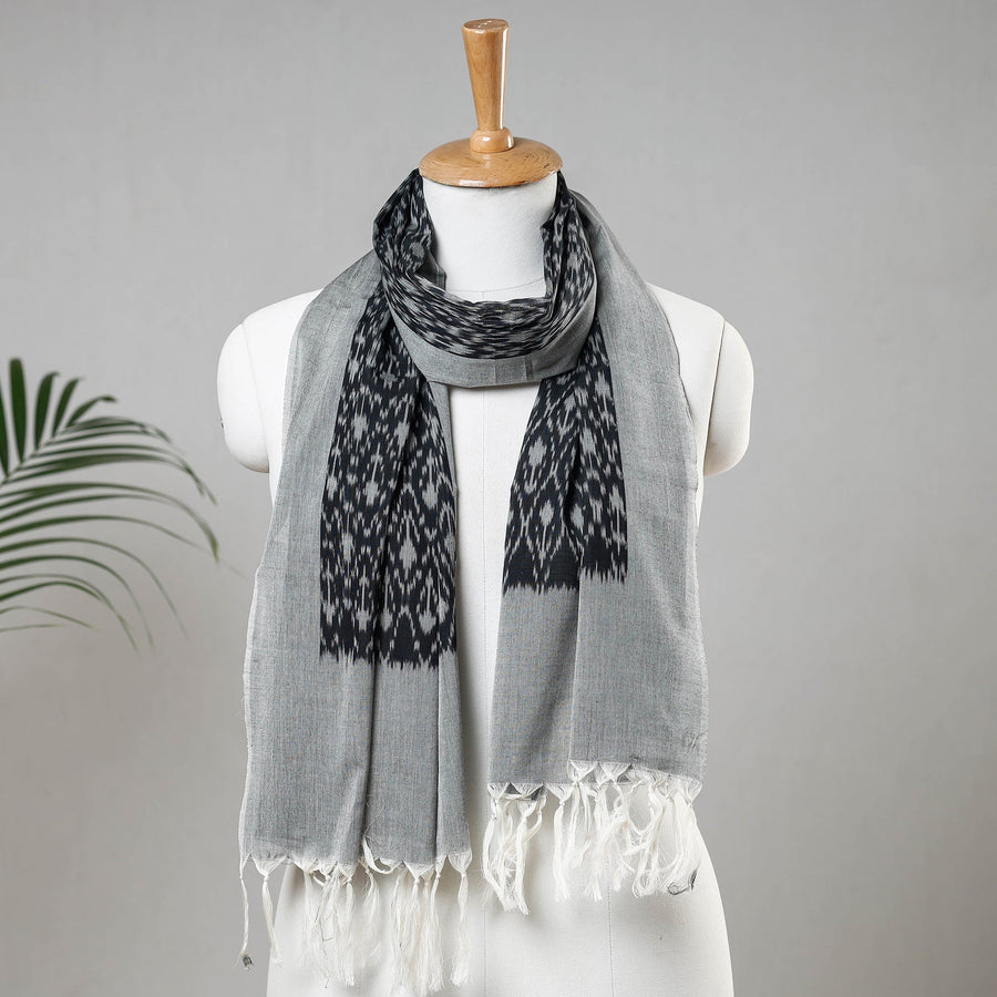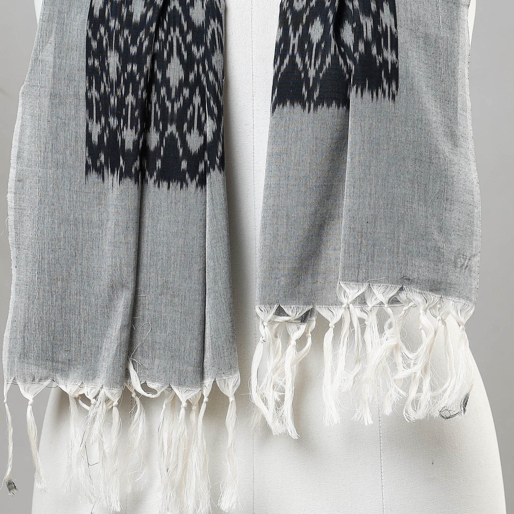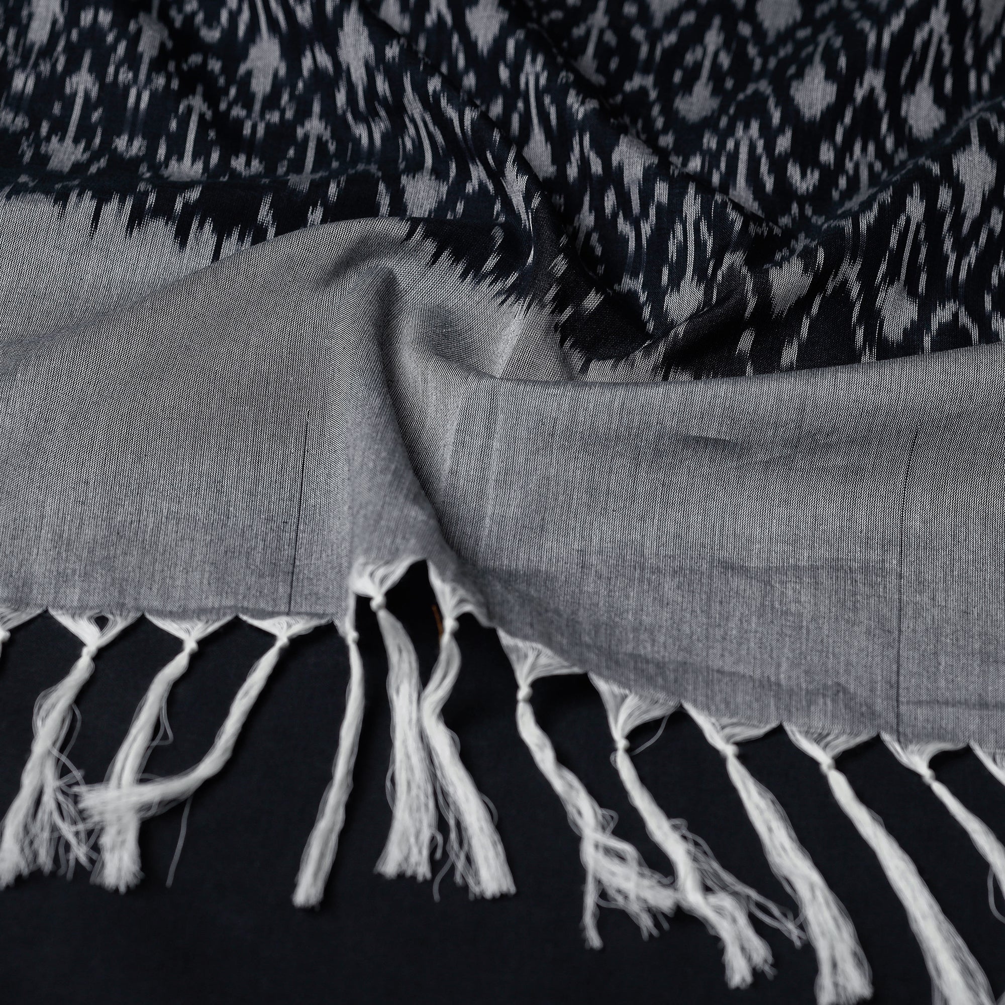 Elevate your style with this exquisite pochampally ikat handloom cotton stole with tassels. Crafted with precision, and is made from high-quality cotton. The vibrant colors are achieved through bleed-free VAT dyeing, ensuring long-lasting beauty. The traditional Ikat technique adds a unique pattern to the stole, making it a versatile accessory for any casual outfit.