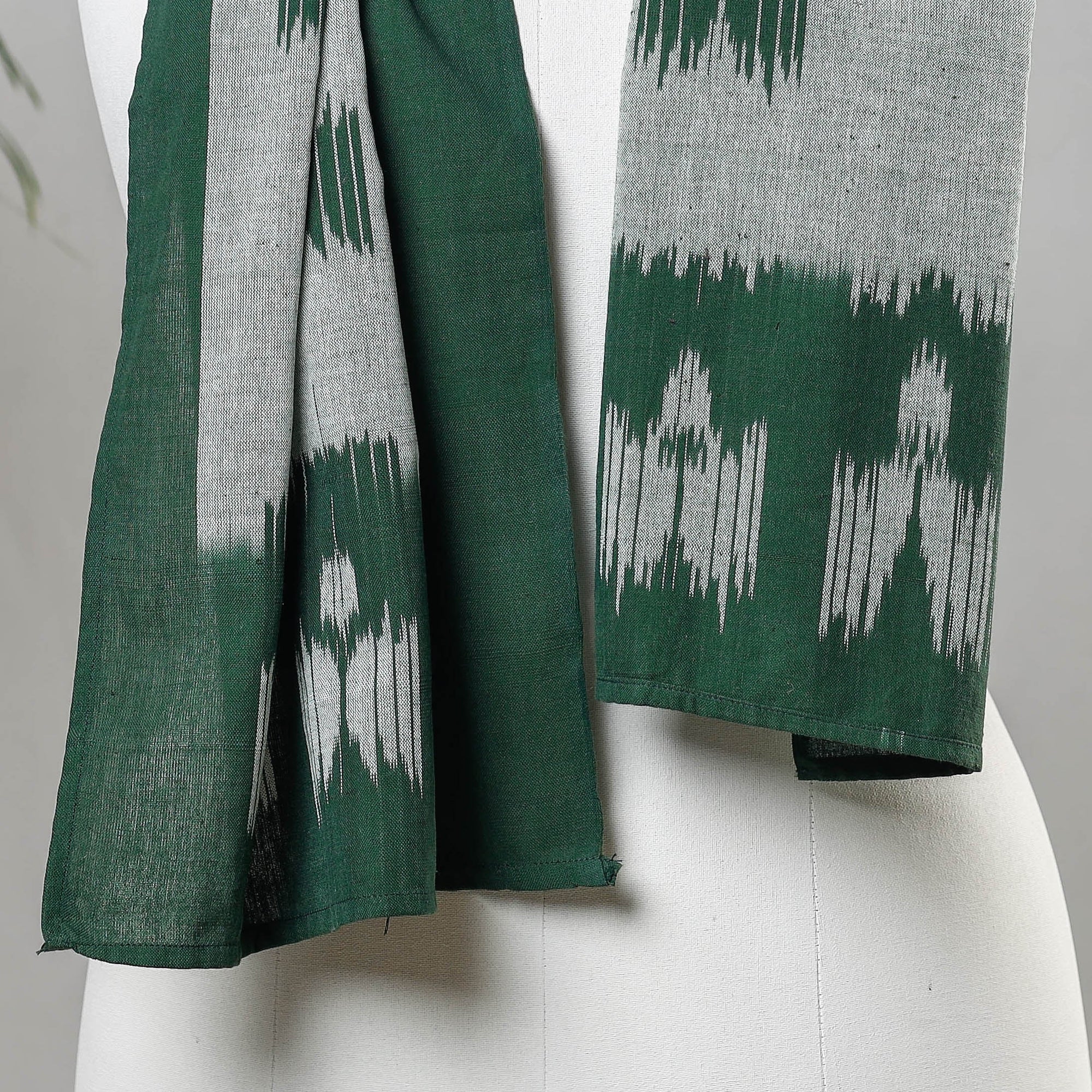 Elevate your style with this exquisite pochampally ikat handloom cotton stole. Crafted with precision, and is made from high-quality cotton. The vibrant colors are achieved through bleed-free VAT dyeing, ensuring long-lasting beauty. The traditional Ikat technique adds a unique pattern to the stole, making it a versatile accessory for any casual outfit.