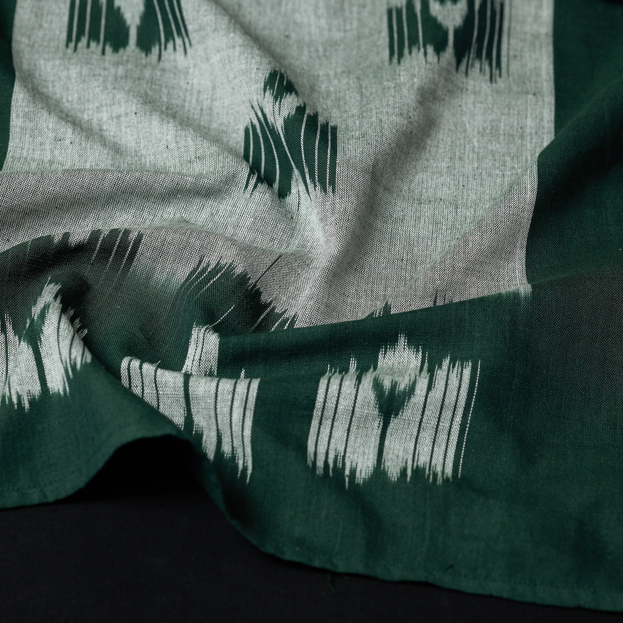 Green - Handloom Raw Silk Pochampally Ikat Fabric 01