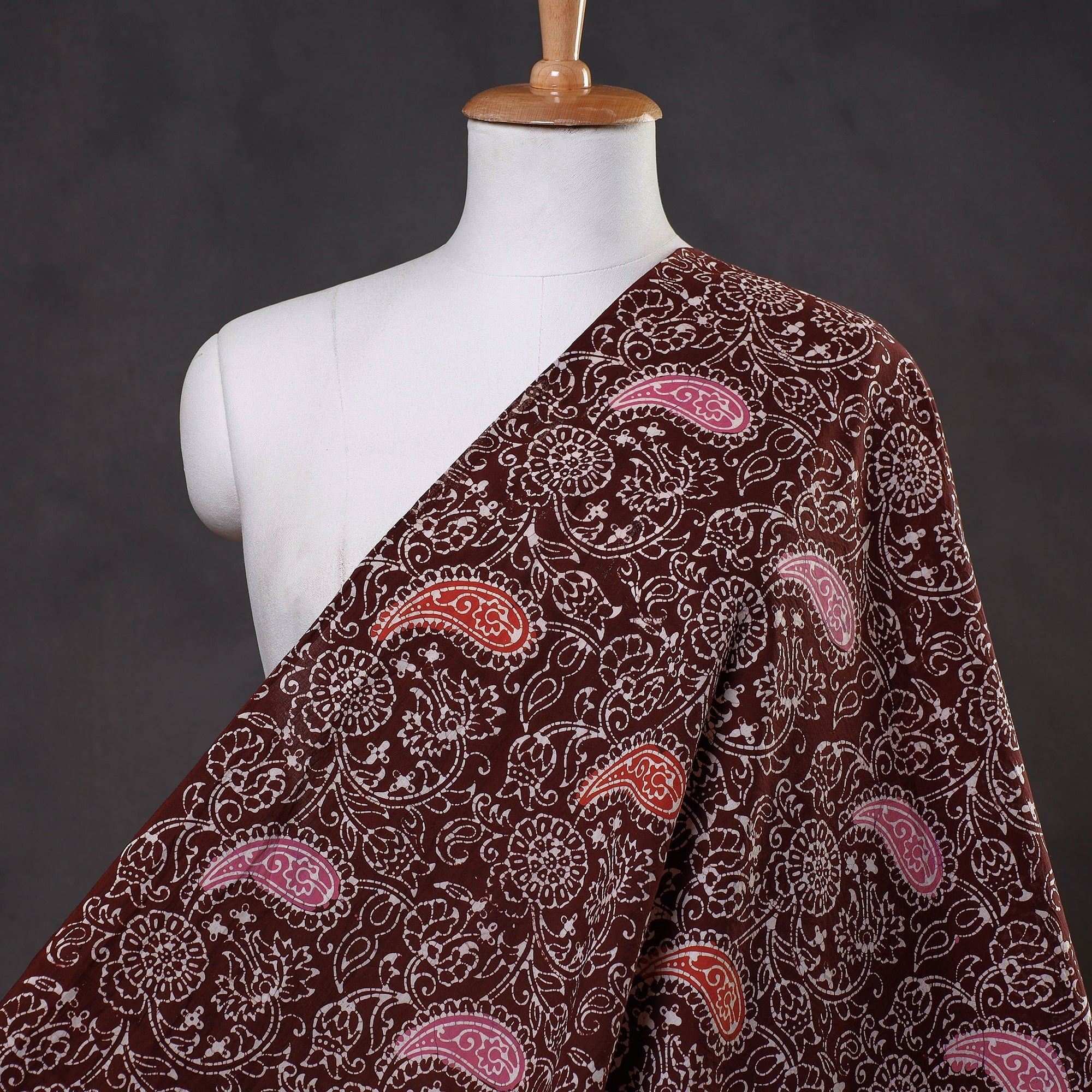 This is a fine quality pure cotton fabric hand batik printed in Indonesian style, sourced from Ujjain, Madhya Pradesh. Batik is a wax-resist dyeing technique used on whole cloth, or cloth made using this technique. The traditional Indian batik designs and motifs are passed down through generations.