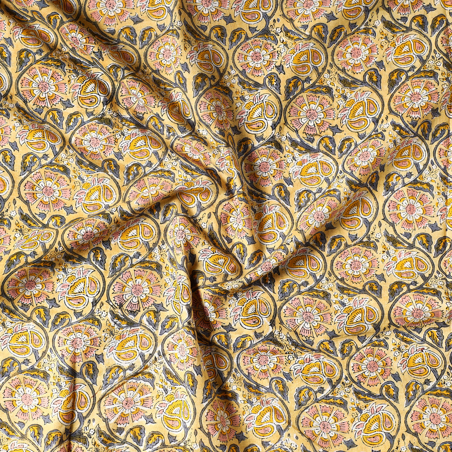 Experience the exquisite beauty of Rajasthan with our yellow sanganeri block-printed cotton precut fabric. Crafted using the traditional hand-block printing technique from Sanganer, Jaipur, each piece showcases intricate floral patterns and vibrant colours. Made with bleed-free VAT dyes, this fine-quality precut fabric ensures lasting brilliance and adds a touch of elegance to your creations.