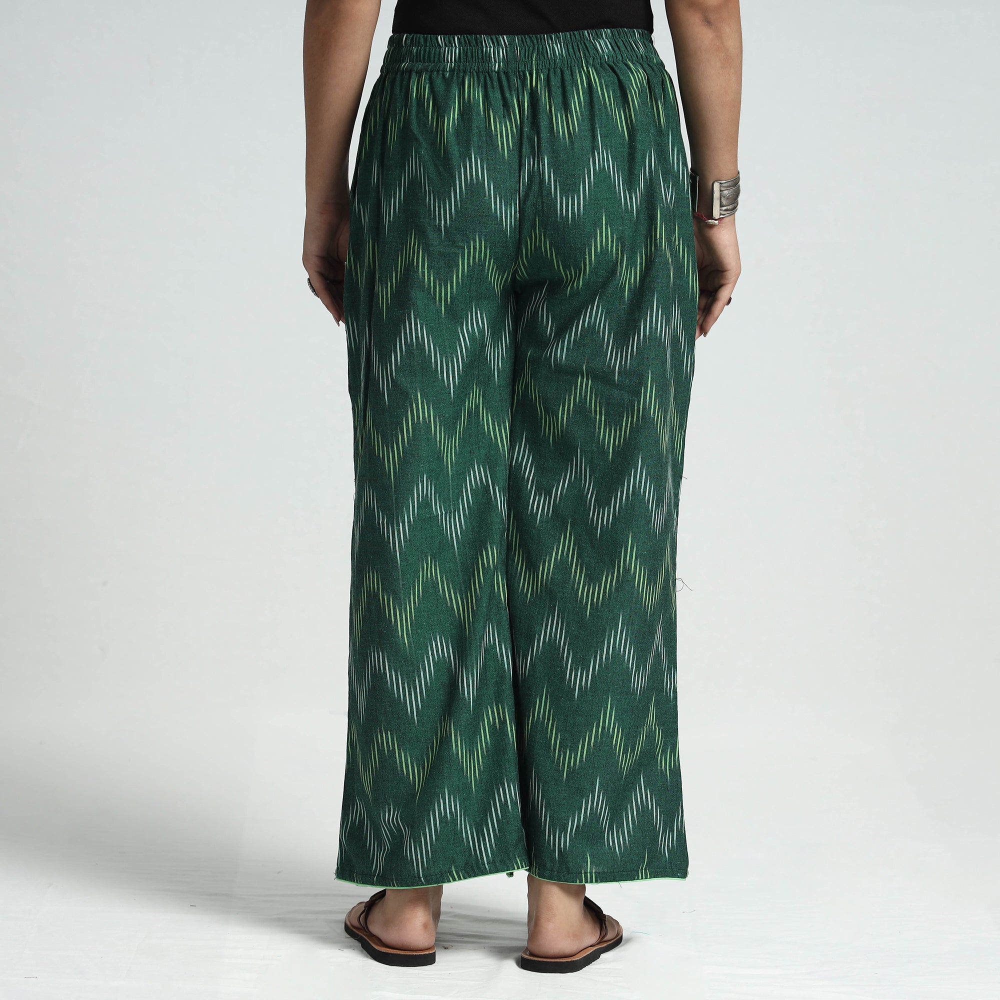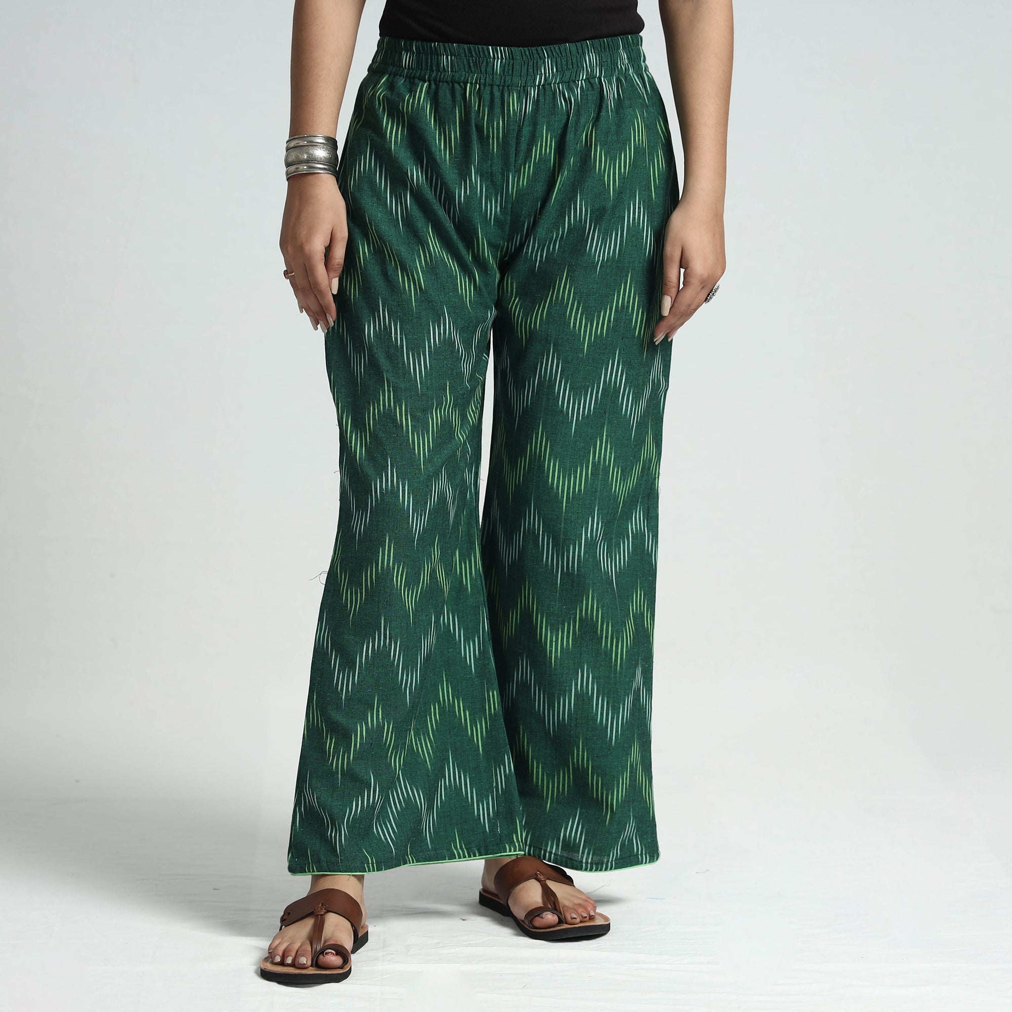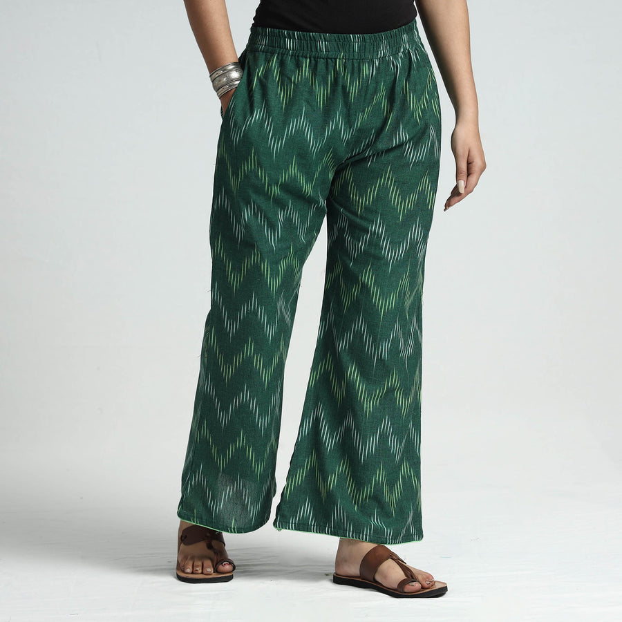 Stay comfortable and stylish in this pochampally ikat weave cotton palazzo. Made from cotton fabric. This palazzo offers the perfect blend of comfort and style. The elasticized waist ensures a great fit, while the two side pockets add functionality. This palazzo makes you feel comfortable and stylish all day long and is perfect for your daily outings and special occasions.