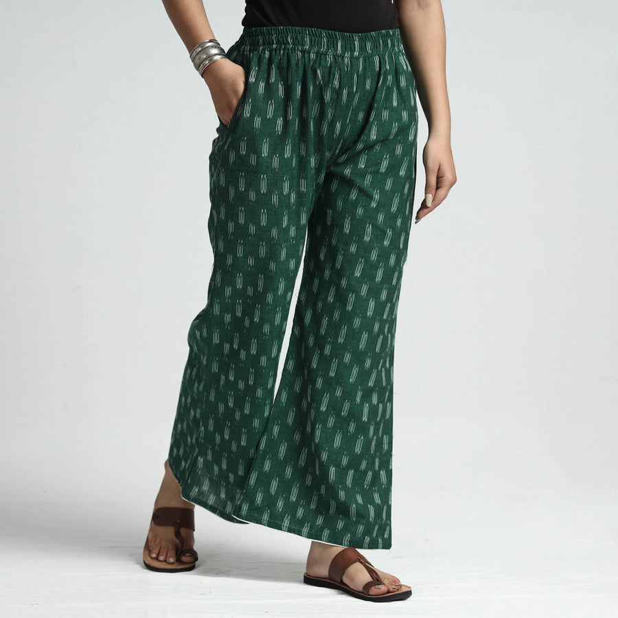 Stay comfortable and stylish in this pochampally ikat weave cotton palazzo. Made from cotton fabric. This palazzo offers the perfect blend of comfort and style. The elasticized waist ensures a great fit, while the two side pockets add functionality. This palazzo makes you feel comfortable and stylish all day long and is perfect for your daily outings and special occasions.