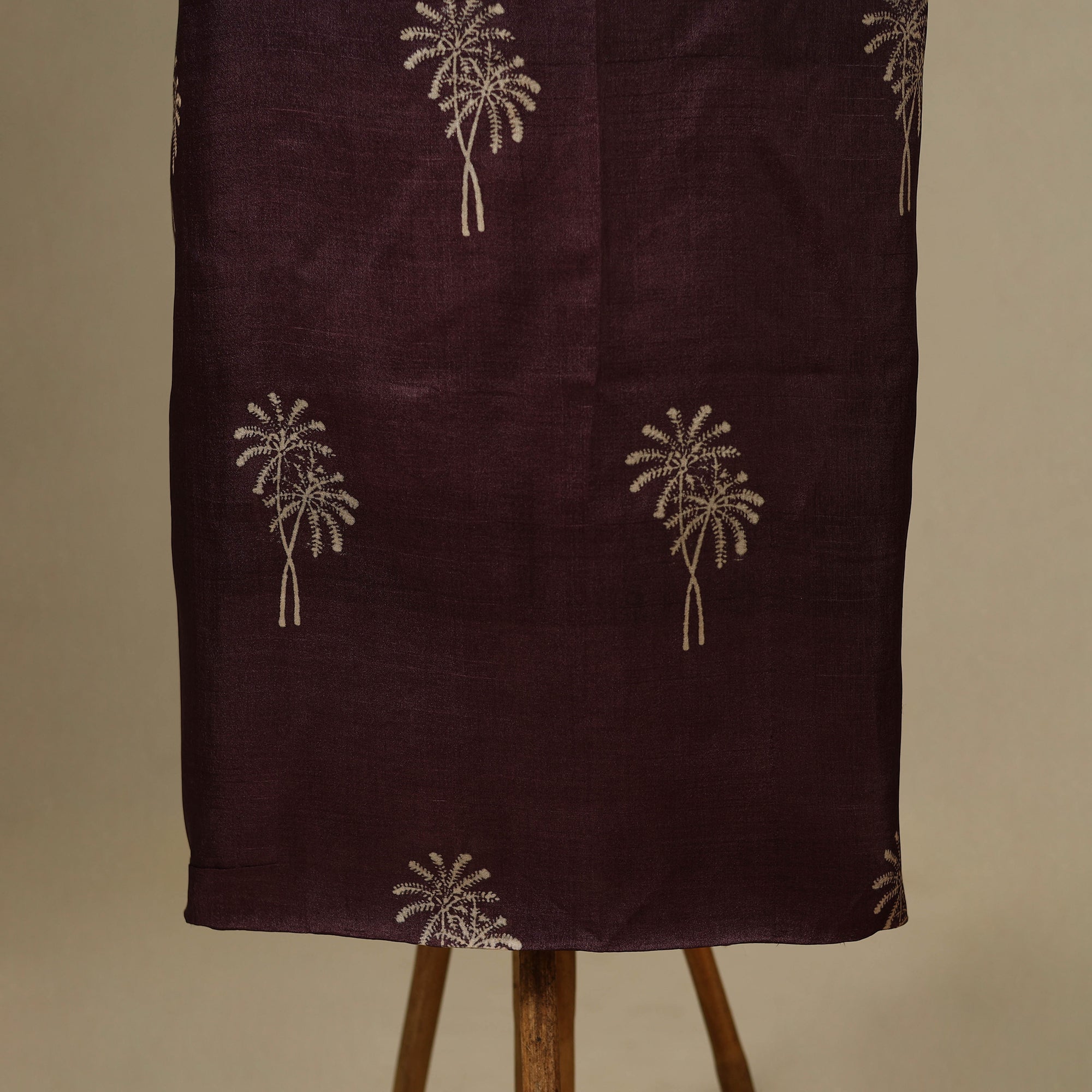 Fine quality purple hand block printed tussar silk handloom 2pc suit material set is crafted from high quality tussar silk known for its unique texture sheen, of silk and feel of cotton. This exquisite suit material is meticulously crafted through age-old handloom techniques and adorned with intricate hand block prints, created by skilled artisans using traditional techniques, making it a true work of art. This set is perfect for adding a touch of timeless charm and sophistication to your wardrobe.