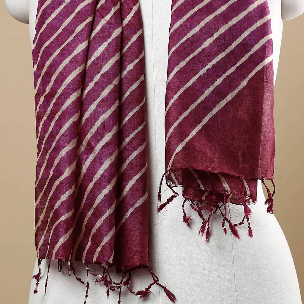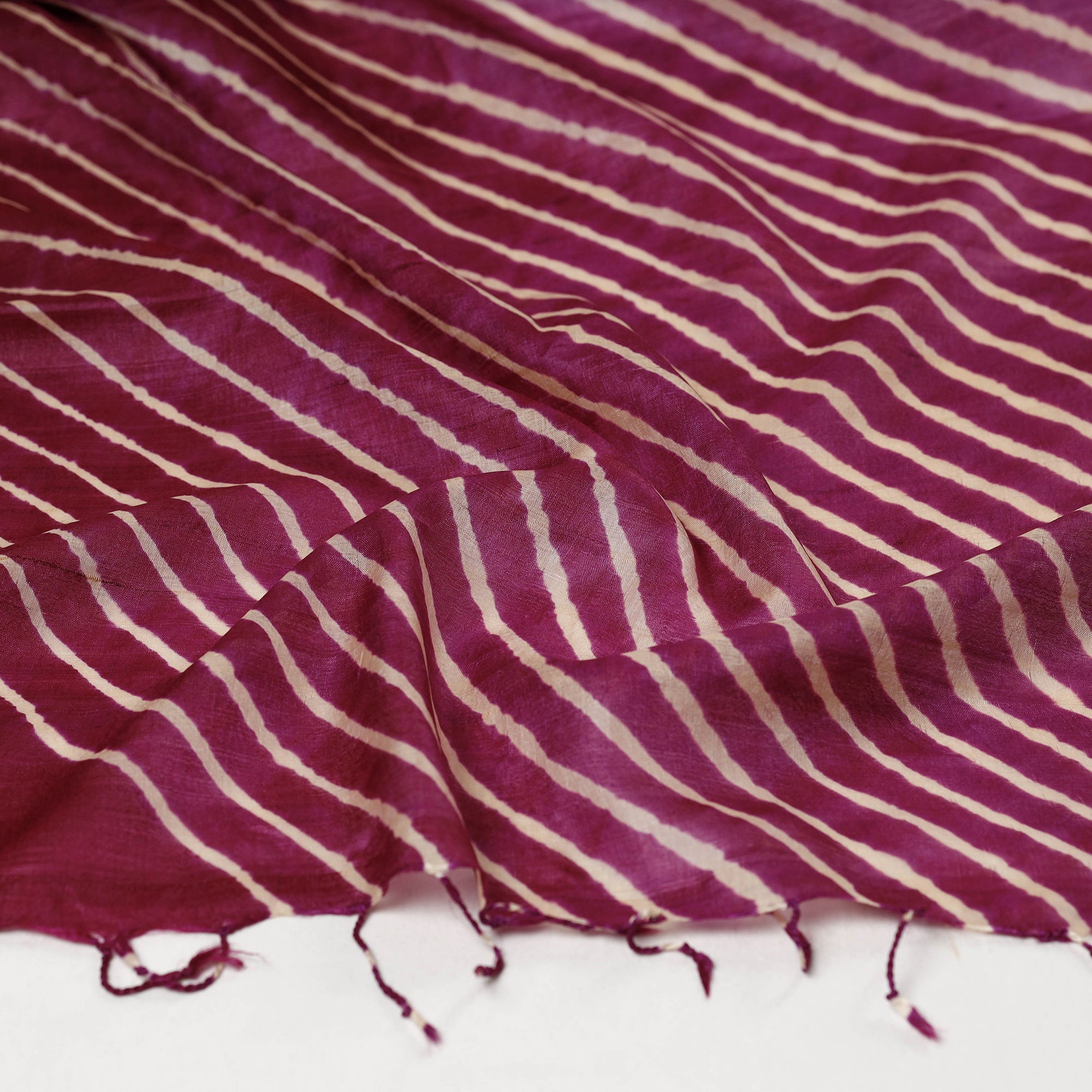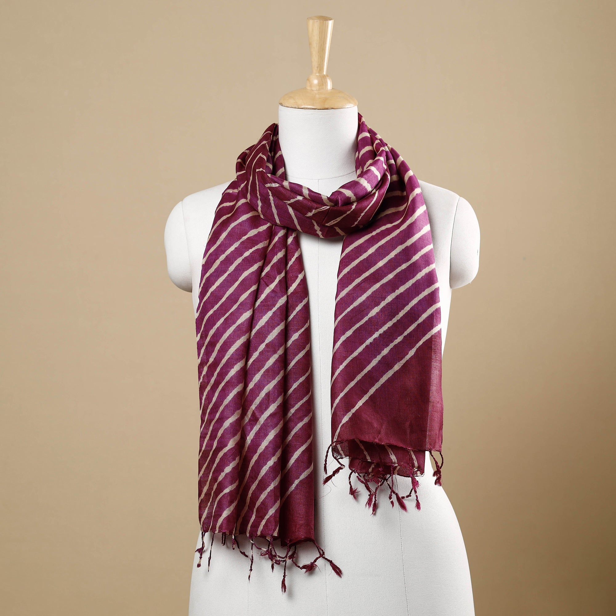 | Material | Elevate your style with this fine-quality leheriya tie-dye tussar silk handloom stole with tassels. The wavy patterns on this stole have been dyed using the leheriya tie and dye technique through the traditional process by the master artisan family of Badshah Miyan from the state of Rajasthan. Made with azo-free dyes. Tussar silk is known for its unique texture, sheen of silk, and feel of cotton. Complete with tassels, this stole is the perfect accessory to elevate your outfit and add a touch of elegance to any occasion. |