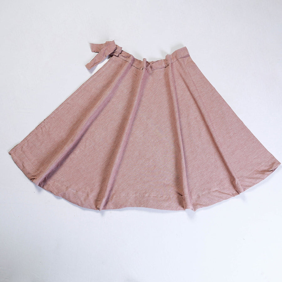 Indulge in the fine quality and simplicity of this plain handloom cotton wrap-around skirt. Made with the utmost care and attention to detail, it features a waist tie-up closure that allows for a customizable and comfortable fit. This skirt exudes a timeless charm and can be paired with various tops for a trendy look.
