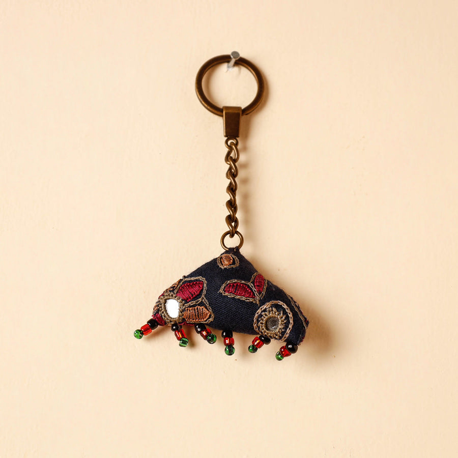 This black handcrafted kutch embroidery keychain is a beautiful and intricate accessory that showcases the traditional artistry of the Kutch region of Gujarat. Crafted by skilled artisans, creating a stunning and unique design. This keychain not only adds a touch of cultural elegance to your belongings but also celebrates the rich heritage of Kutch craftsmanship.