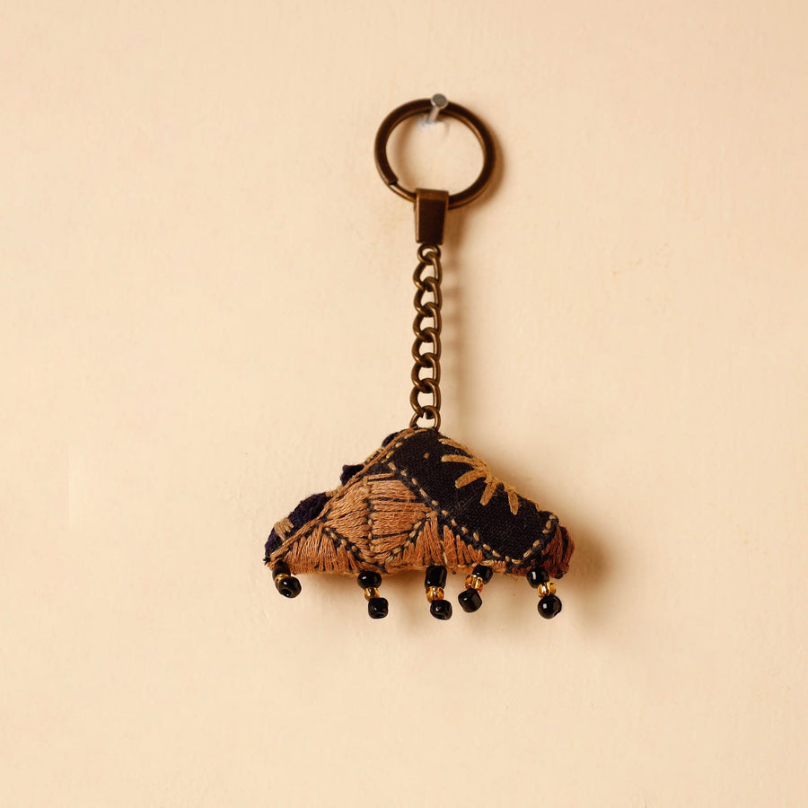 This handcrafted black kutch embroidery keychain is a beautiful and intricate accessory that showcases the traditional artistry of the Kutch region of Gujarat. Crafted by skilled artisans, creating a stunning and unique design. This keychain not only adds a touch of cultural elegance to your belongings but also celebrates the rich heritage of Kutch craftsmanship.