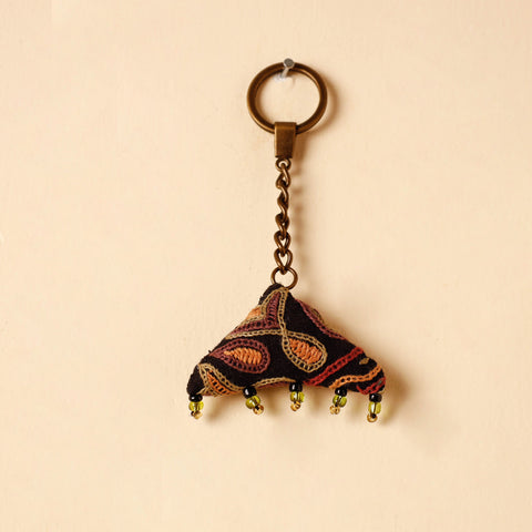This handcrafted black kutch embroidery keychain is a beautiful and intricate accessory that showcases the traditional artistry of the Kutch region of Gujarat. Crafted by skilled artisans, creating a stunning and unique design. This keychain not only adds a touch of cultural elegance to your belongings but also celebrates the rich heritage of Kutch craftsmanship.