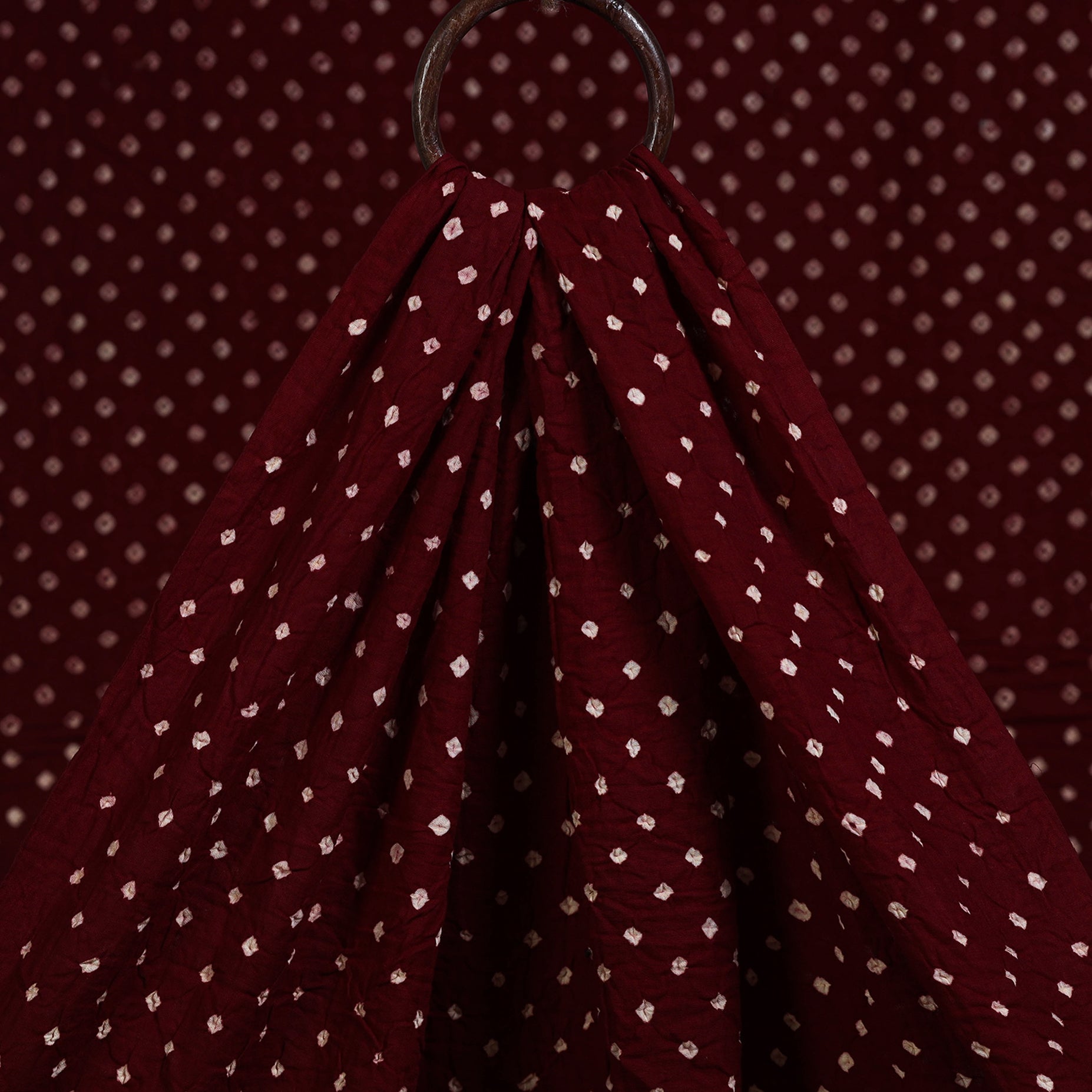 Embrace the charm of Kutch with this stunning maroon bandhani satin cotton fabric. Carefully hand-tied and dyed using age-old bandhej techniques, every piece features detailed patterns that echo a rich cultural legacy. Soft, breathable, and versatile, it’s perfect for creating modern outfits with a traditional touch.