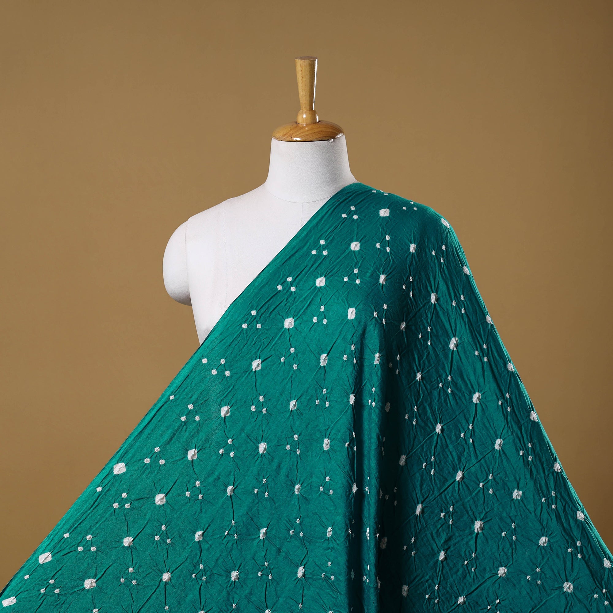 Elevate your wardrobe with this exquisite green kutch bandhani tie-dye cotton fabric. Featuring a majestic bandhani pattern, this fabric is hand-tied and dyed using the traditional technique practiced by the artisans of Kutch. The art of bandhani is a highly skilled process that involves tightly tying fabric with threads at several points to create intricate patterns. This fine quality fabric is a testament to the craftsmanship and rich cultural heritage of Kutch.