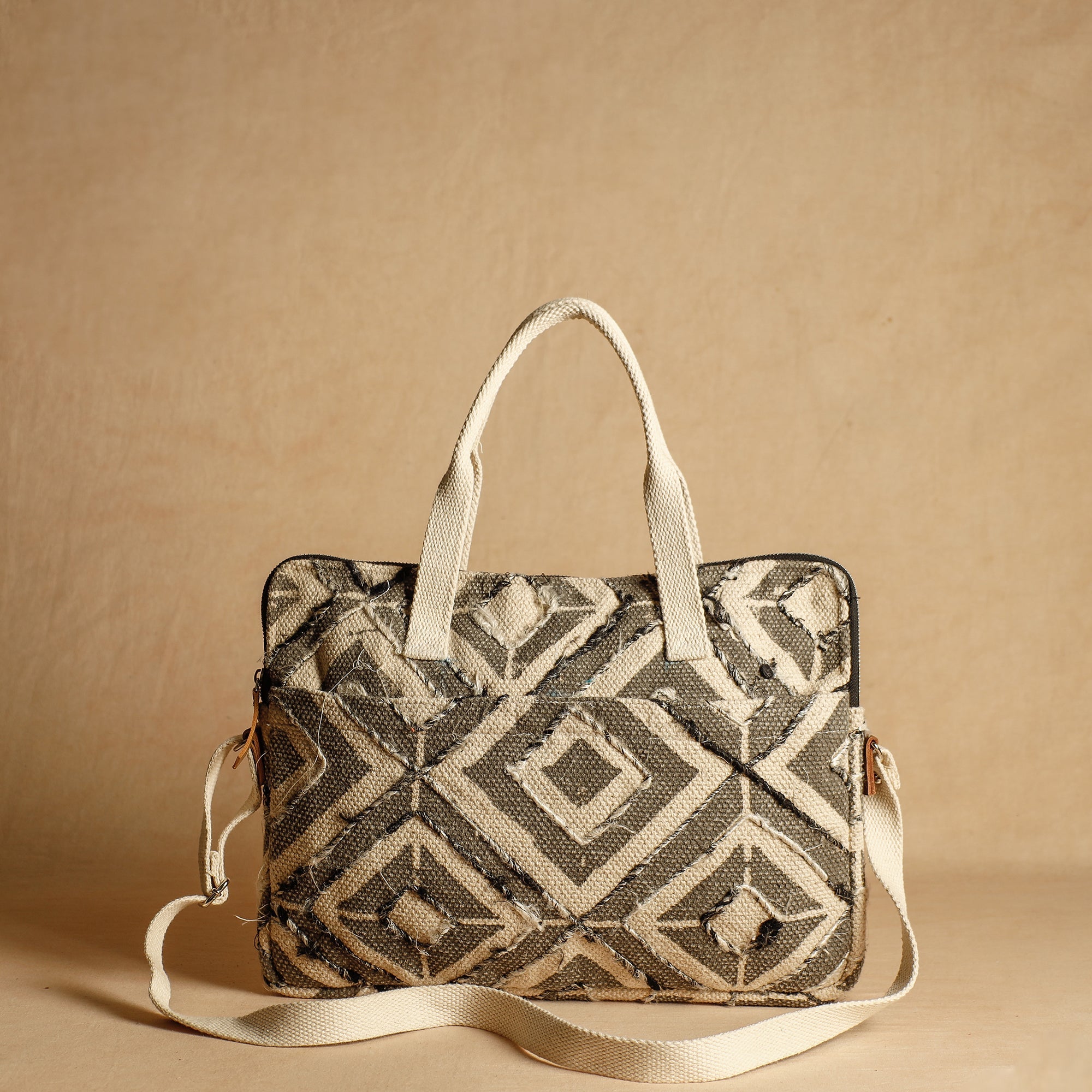 This exquisite handcrafted jaipur hand block printed laptop bag with an adjustable sling is designed to protect and carry your laptop with ease and style. Crafted from durable and thick handloom cotton. The interior boasts soft cotton fabric, ensuring optimal protection. With one laptop compartment and one simple pocket on the inside, and one velcro lock pocket outside, there is ample space to keep your laptop and other essentials organised. Embrace a perfect fusion of fashion and utility with this uniquely designed laptop bag.