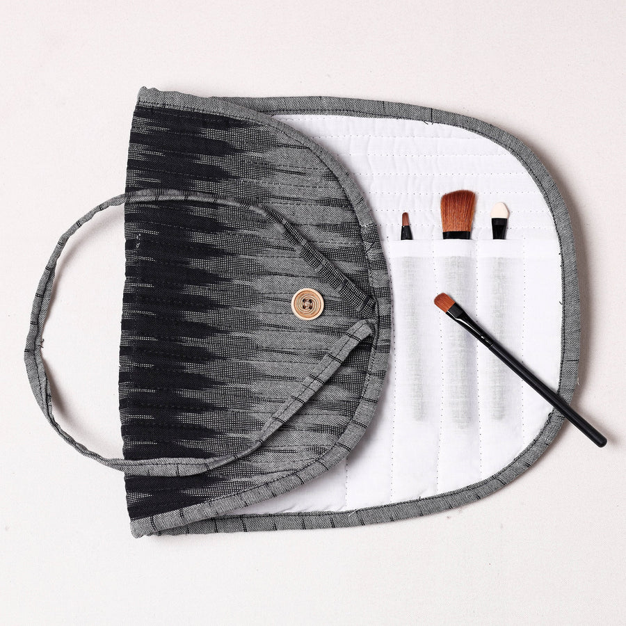 Black - Ikat Fabric Multipurpose Segmented Make-up Brush Wrap Pouch/Case