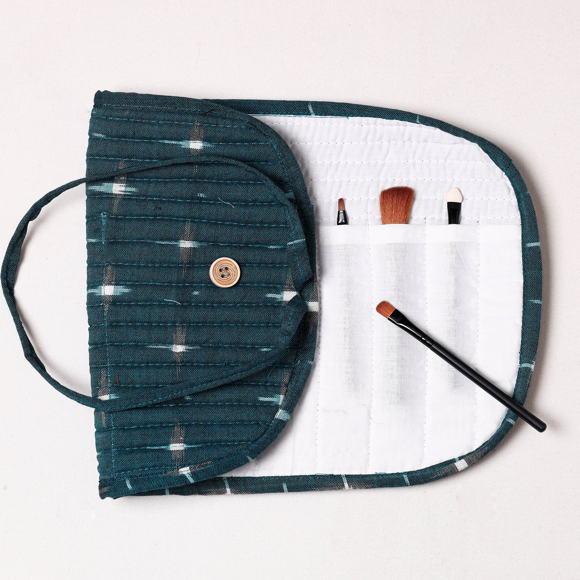 Handcraftedikat cotton multipurposesegmentedmakeup brush wrap pouch/storage organizer with multiple compartments for convenient and stylish organization of your beauty tools.