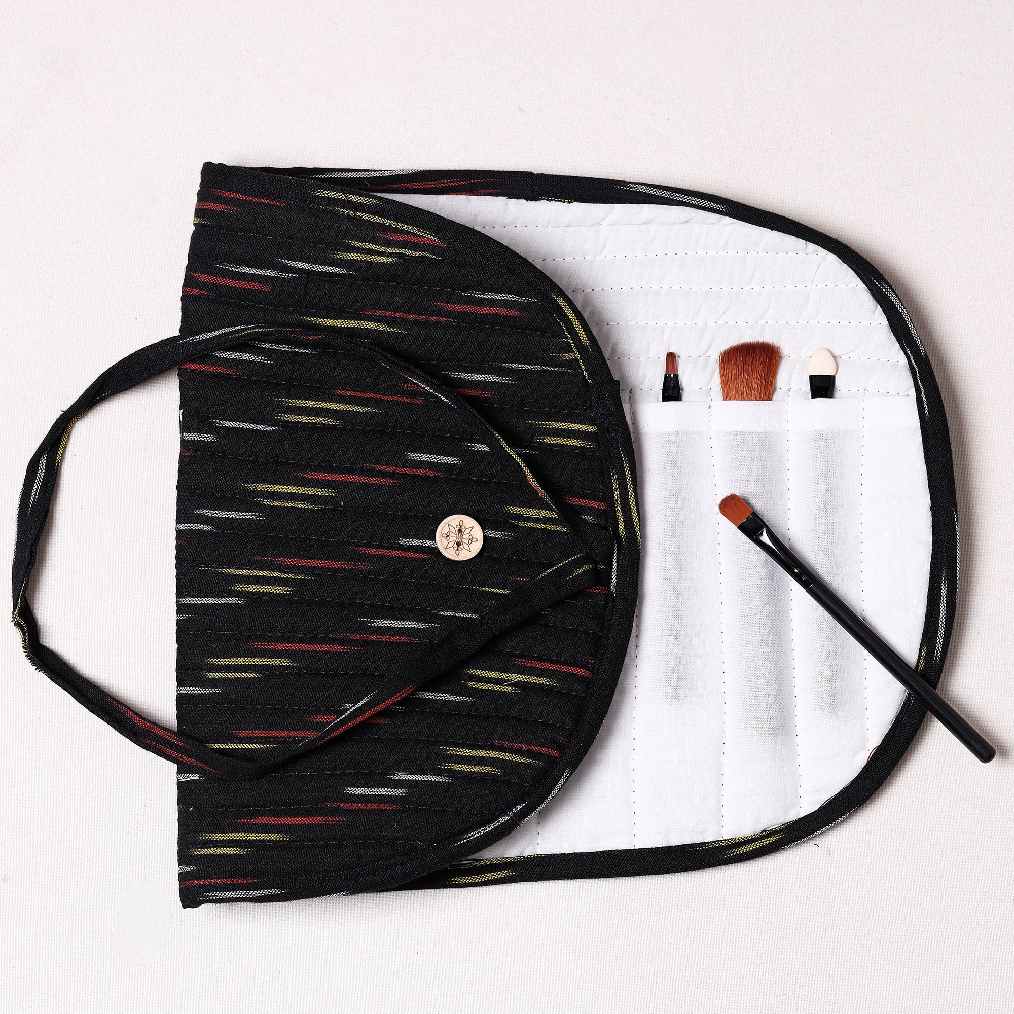 Handcraftedikat cotton multipurposesegmentedmakeup brush wrap pouch/storage organizer with multiple compartments for convenient and stylish organization of your beauty tools.