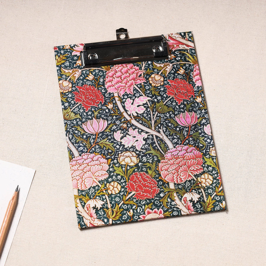 Elevate your workspace with our exquisite handcrafted floral-printed clipboard. This clipboard is crafted from durable hardboard, adorned with screen-printed cotton fabric, and featuring a robust metal clip, it seamlessly combines style and functionality. Perfect for any purpose, this clipboard adds a touch of sophistication to your note-taking, sketches, or document handling.