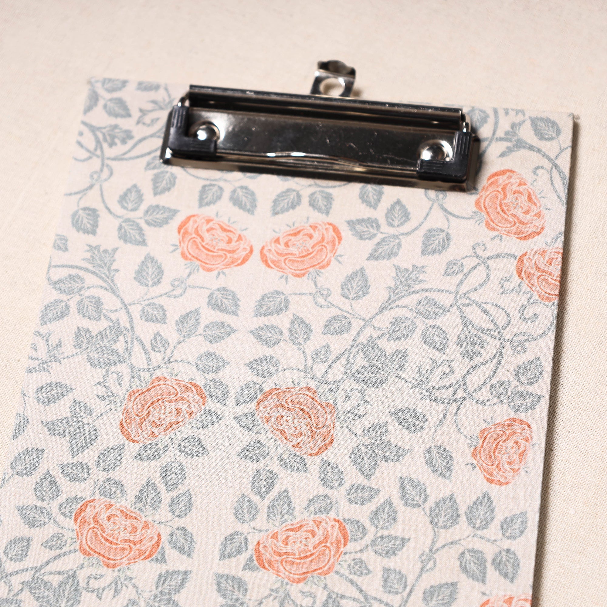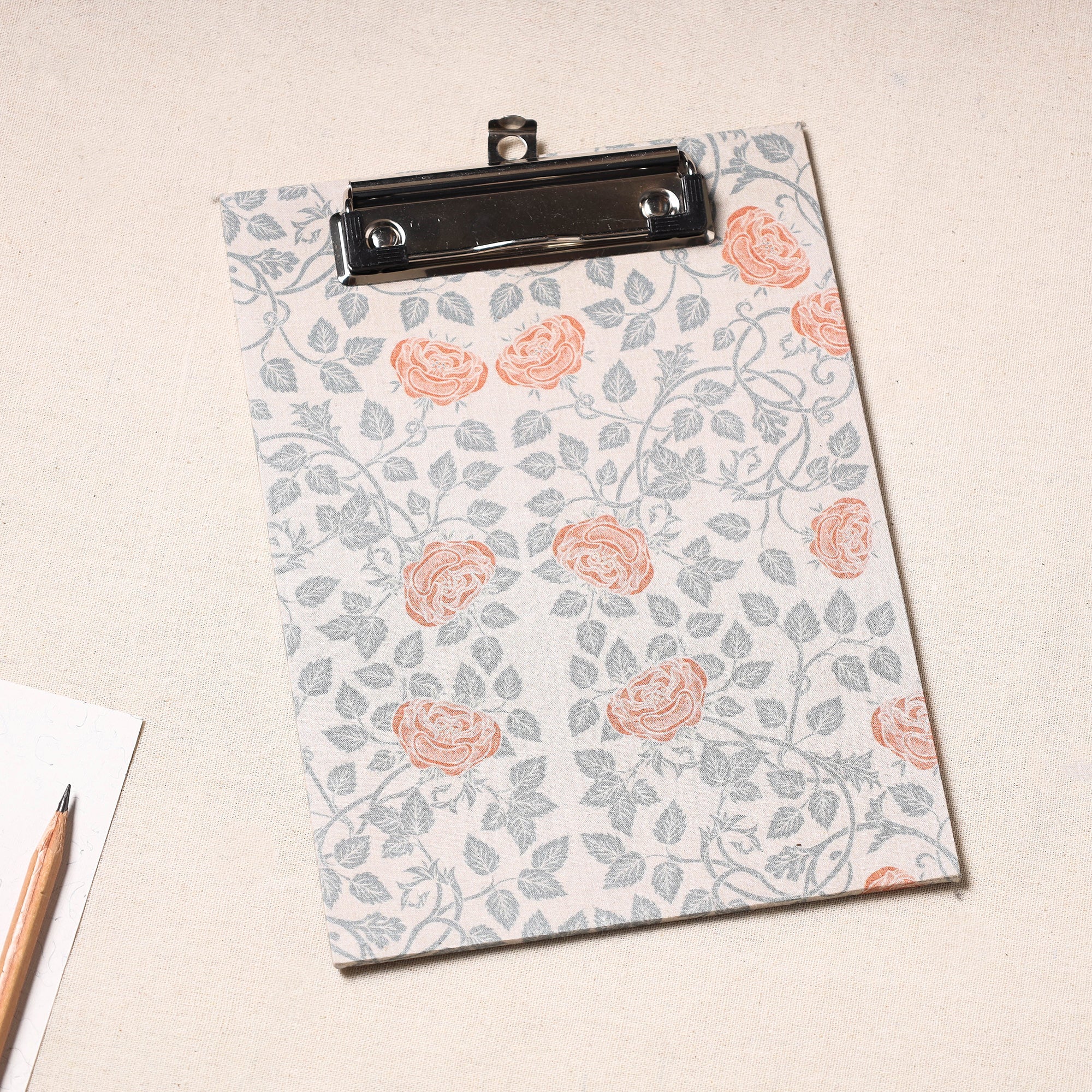 Elevate your workspace with our exquisite handcrafted floral-printed clipboard. This clipboard is crafted from durable hardboard, adorned with screen-printed cotton fabric, and featuring a robust metal clip, it seamlessly combines style and functionality. Perfect for any purpose, this clipboard adds a touch of sophistication to your note-taking, sketches, or document handling.