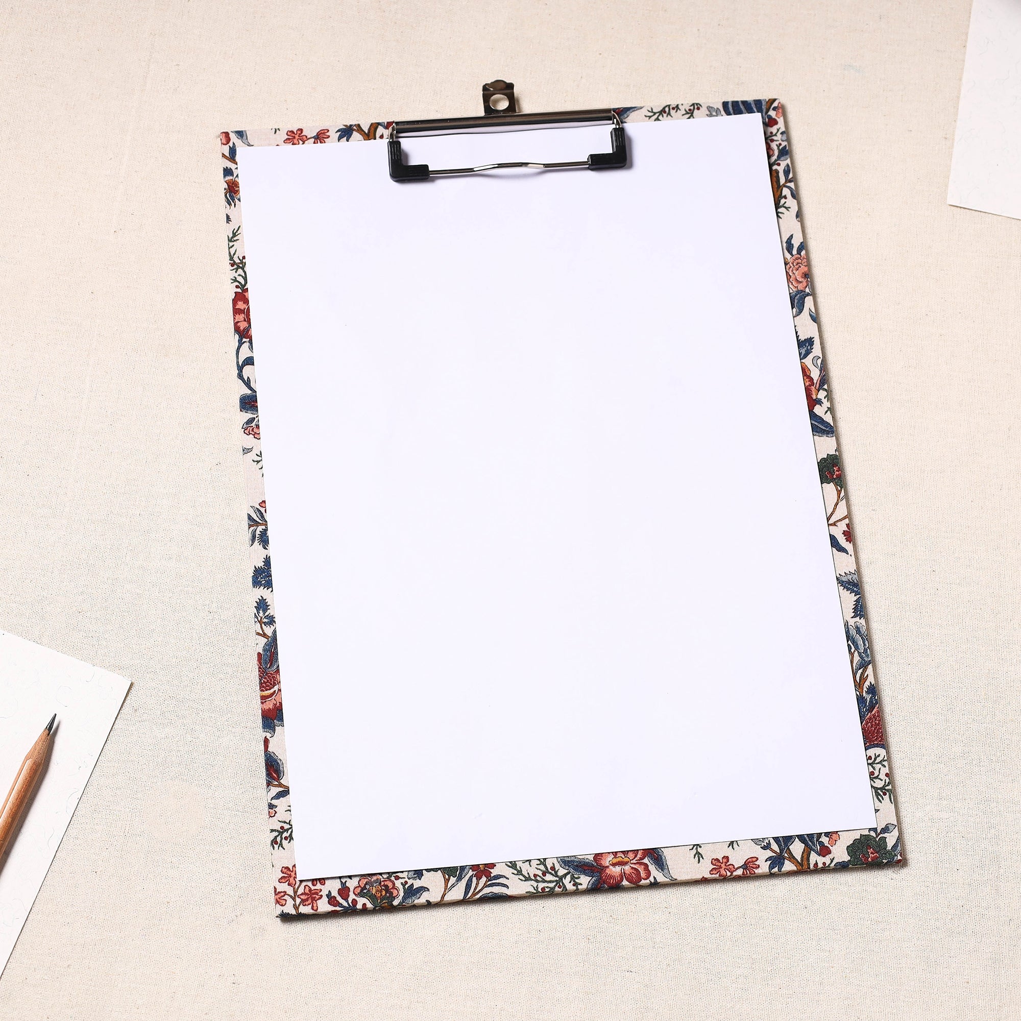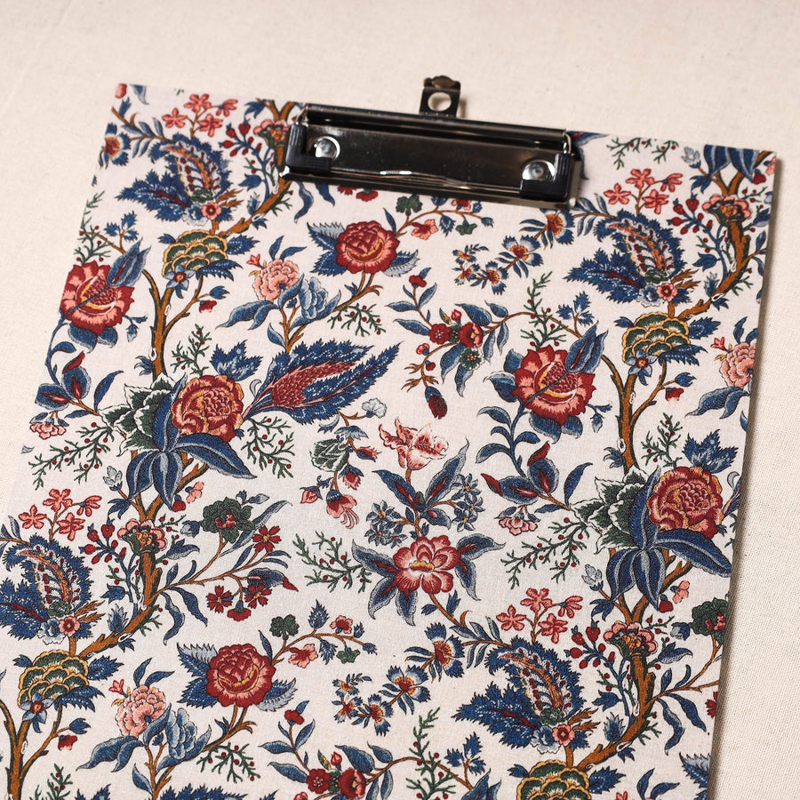 Elevate your workspace with our exquisite handcrafted floral-printed clipboard. This clipboardis crafted from durable hardboard, adorned with screen-printed cotton fabric, and featuring a robust metal clip, it seamlessly combines style and functionality. Perfect for any purpose, this clipboard adds a touch of sophistication to your note-taking, sketches, or document handling.