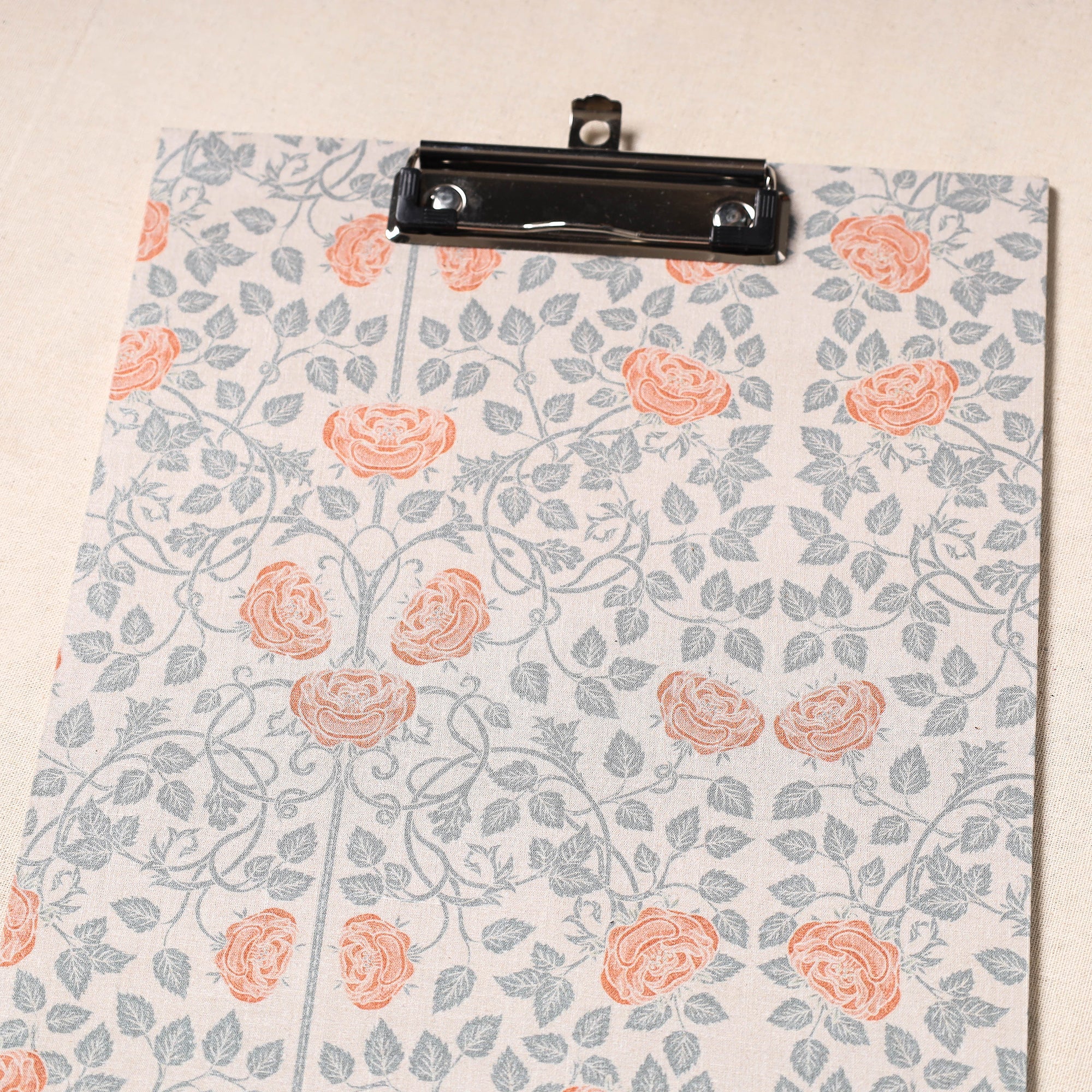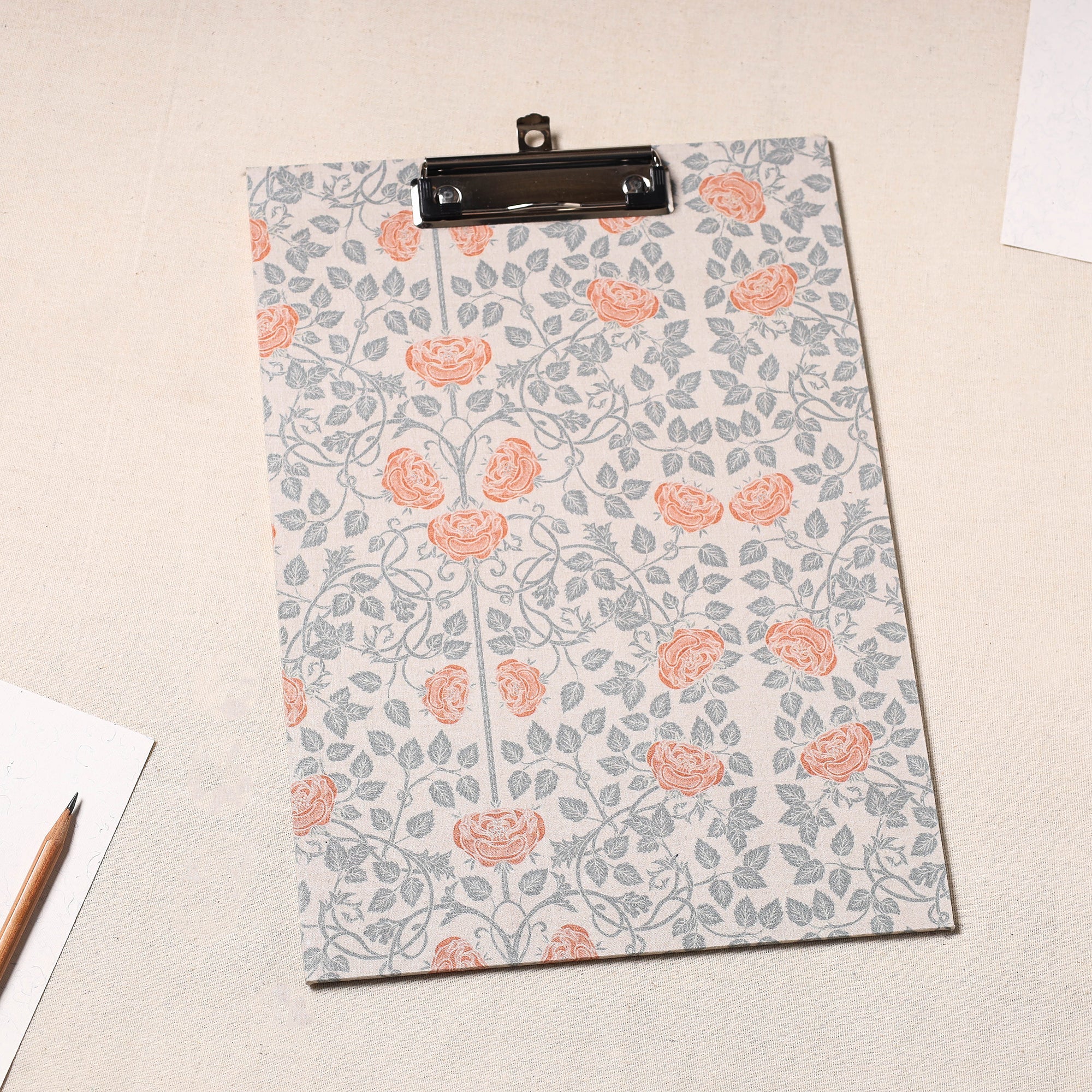 Elevate your workspace with our exquisite handcrafted floral-printed clipboard. This clipboard is crafted from durable hardboard, adorned with screen-printed cotton fabric, and featuring a robust metal clip, it seamlessly combines style and functionality. Perfect for any purpose, this clipboard adds a touch of sophistication to your note-taking, sketches, or document handling.