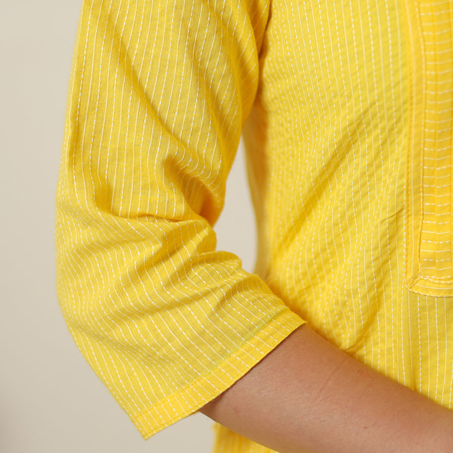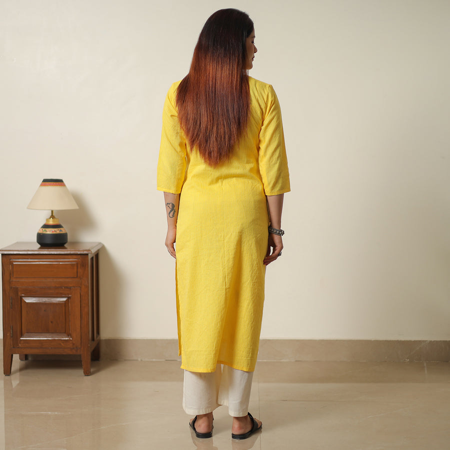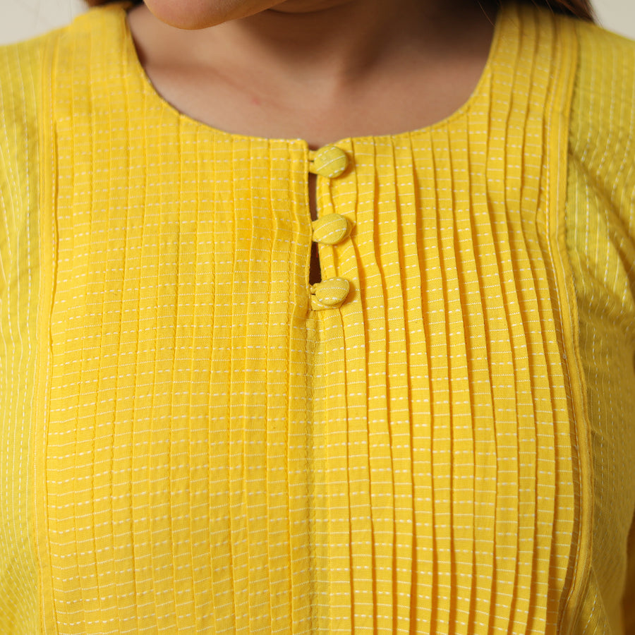 Look and feel beautiful in this uniquely designed plain running stitch cotton pintuck long kurta. This exquisite kurta is crafted from the fine quality plain running stitch cotton fabric, ensuring a comfortable feel against your skin. It boasts an exquisite running stitch and pintuck design, adding a touch of elegance to your ensemble. The kurta also features a convenient one-side pocket, perfect for carrying small essentials. It's an ideal choice for both casual and festive occasions.