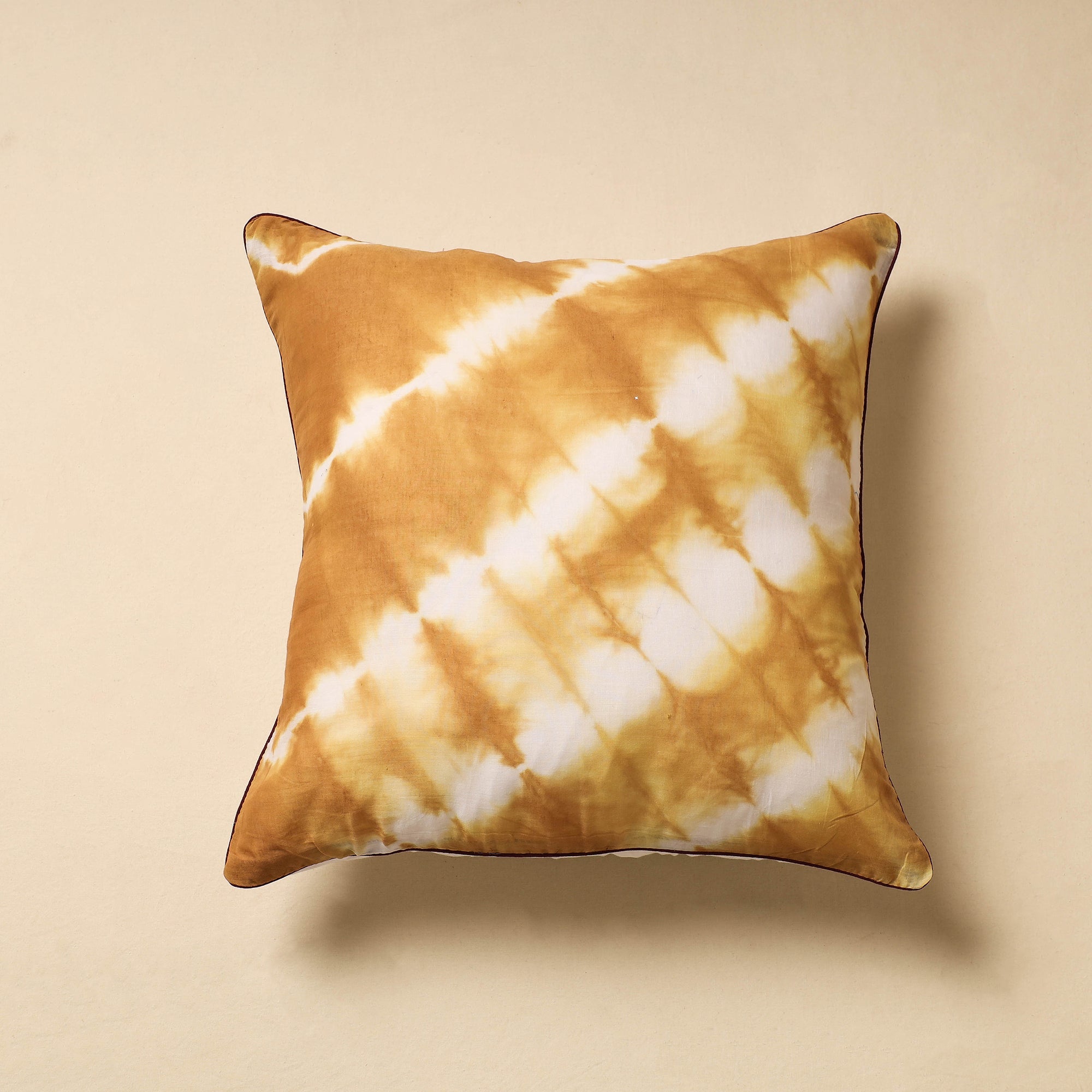 Fine quality brown shibori tie-dyecotton cushion cover. (hand dyed using shibori tie and dye technique in which the fabric is tied using clamp or stitches in the required design and the pattern is dyed)