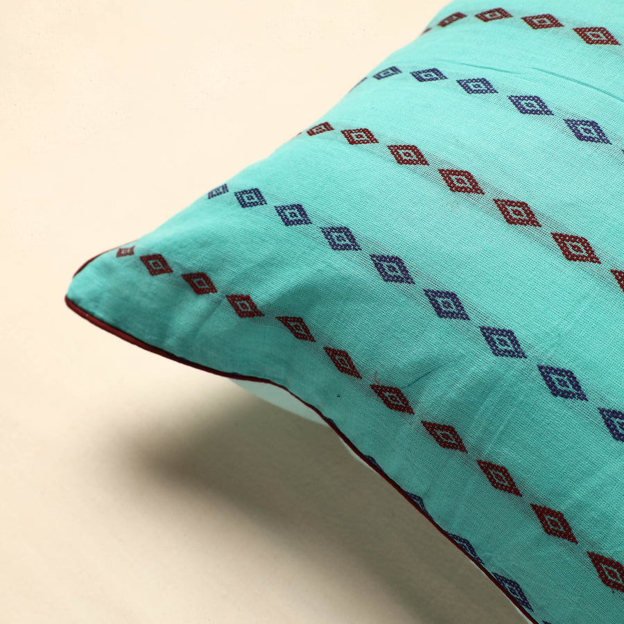 Enhance your home decor with our fine quality blue jacquard cushion cover. The fine quality fabric enhances both comfort and style, adding a touch of sophistication to any space. Made from pure cotton fabrics textured with handmade textiles of India, this cushion cover adds a touch of elegance and craftsmanship to your living space.