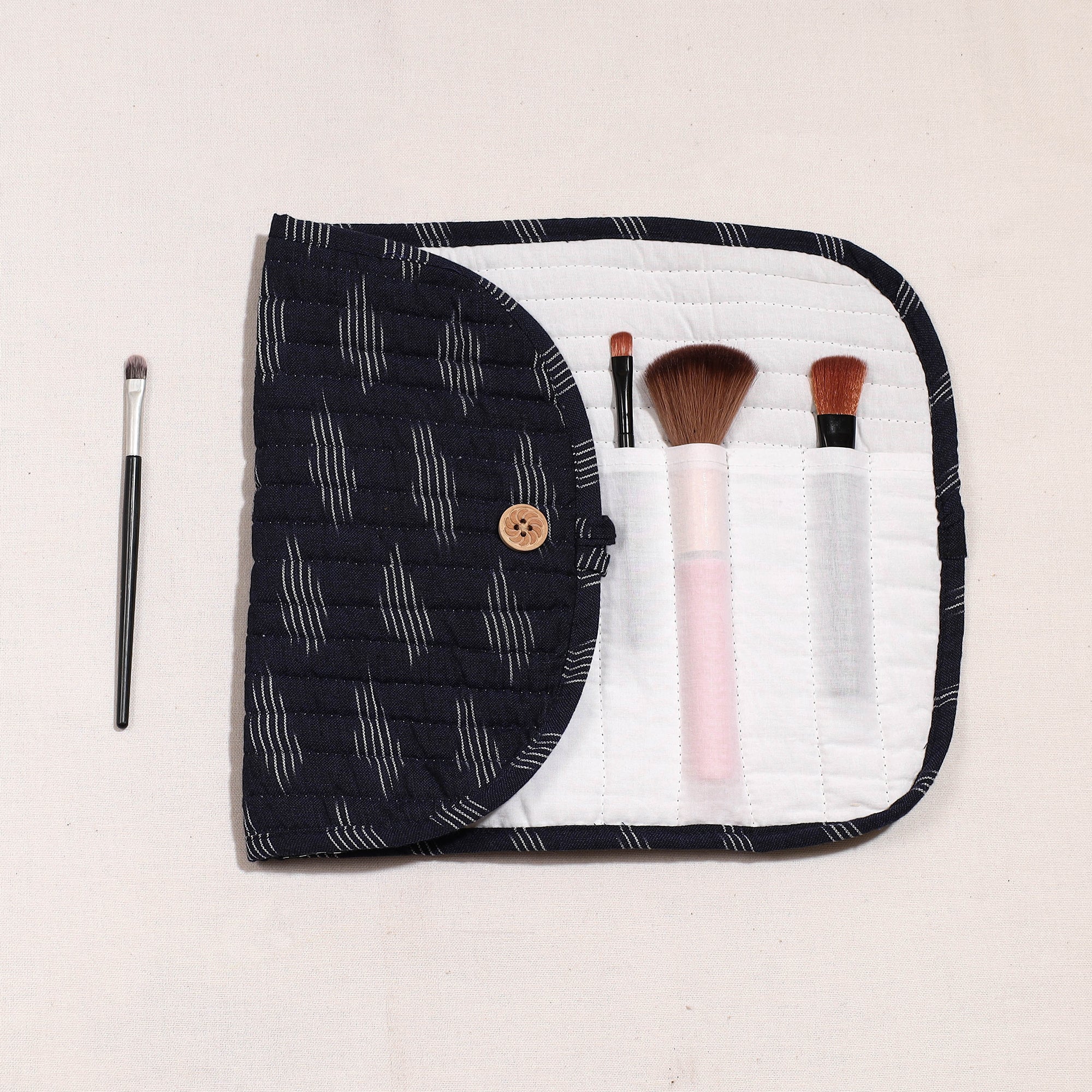 Black - Ikat Fabric Multipurpose Segmented Make-up Brush Wrap Pouch/Case