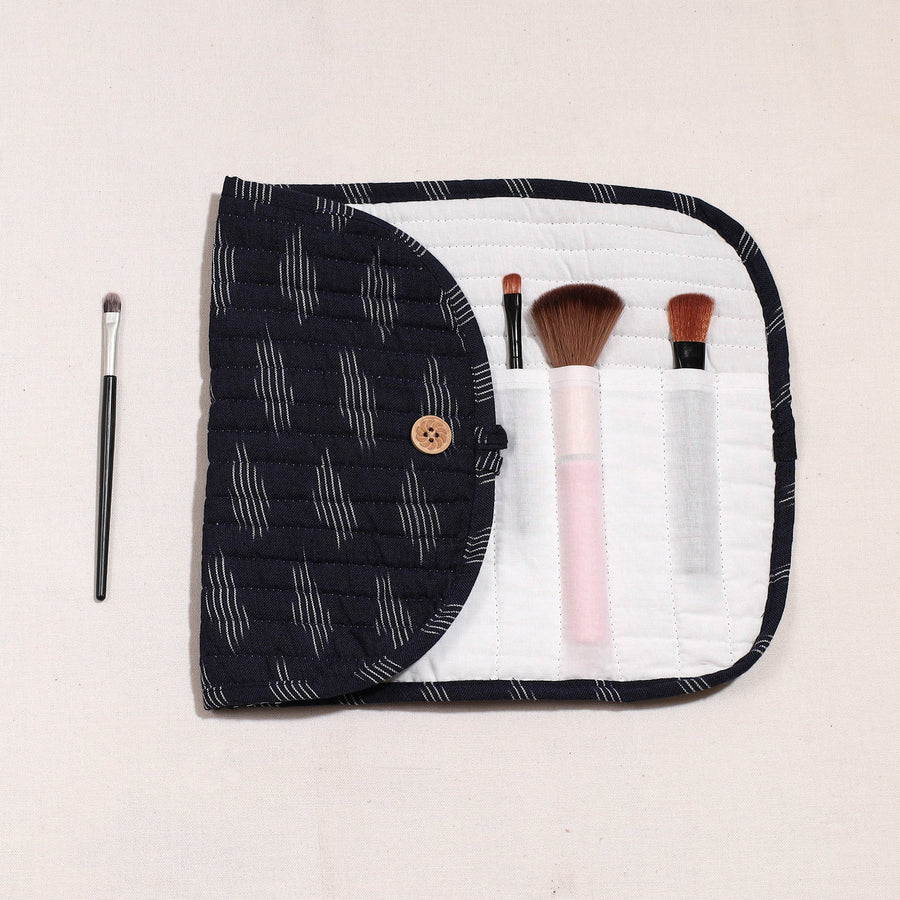 Material Handcrafted ikat cotton multipurpose segmented makeup brush wrap pouch/storage organizer with multiple compartments for convenient and stylish organization of your beauty tools.