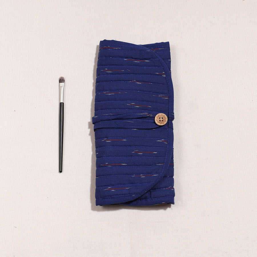 Blue - Ikat Fabric Multipurpose Segmented Make-up Brush Wrap Pouch/Case