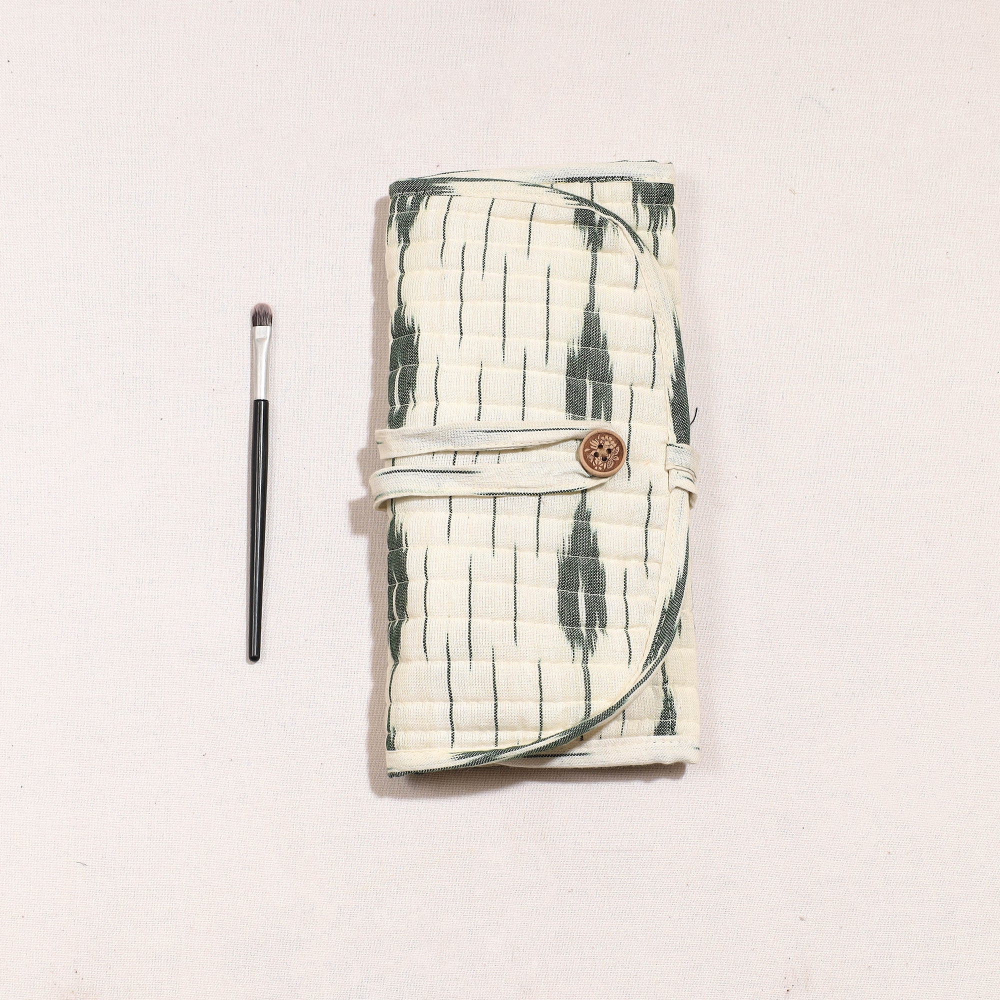Handcraftedikat cotton multipurposesegmentedmakeup brush wrap pouch/storage organizer with multiple compartments for convenient and stylish organization of your beauty tools.