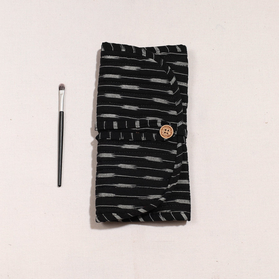 Black - Ikat Fabric Multipurpose Segmented Make-up Brush Wrap Pouch/Case