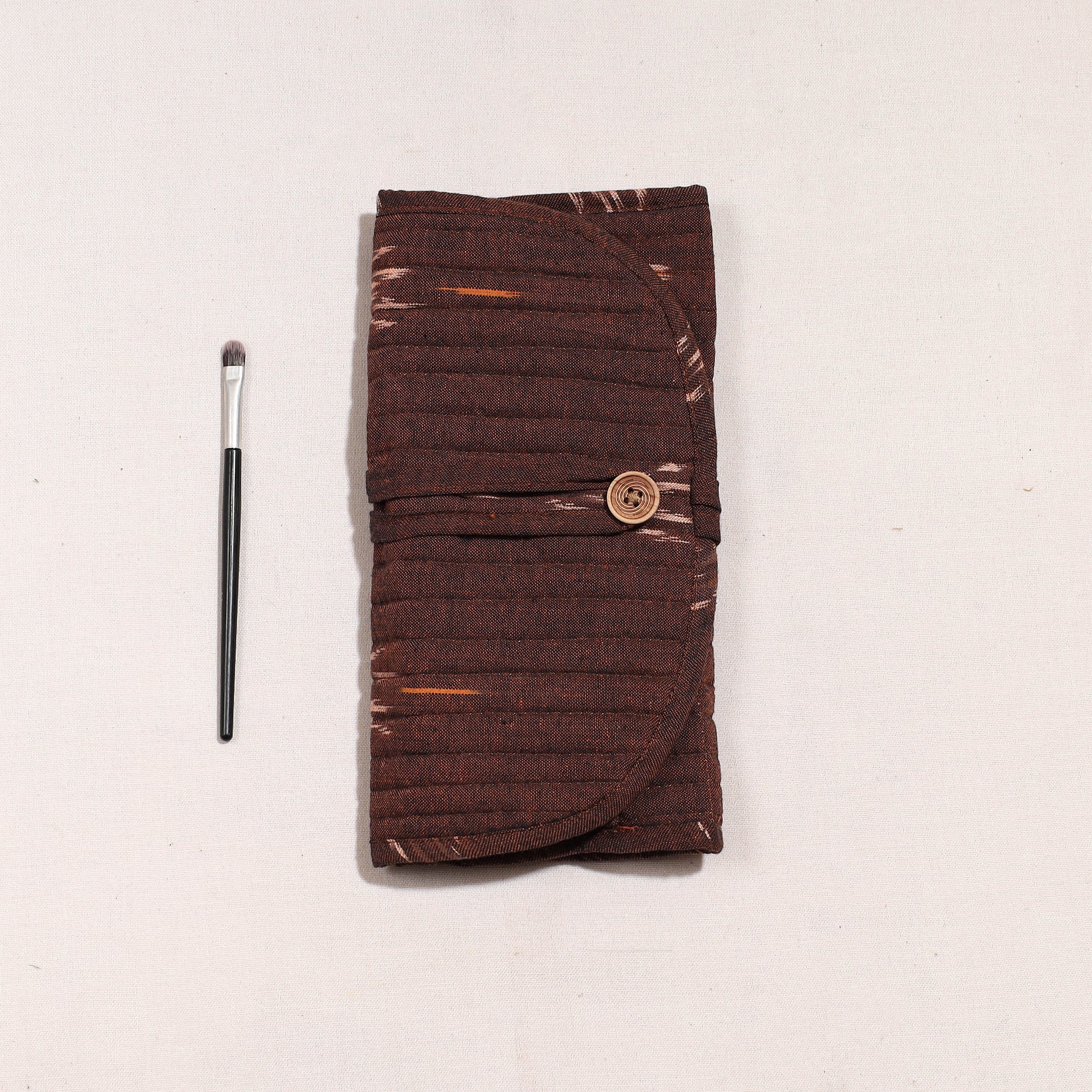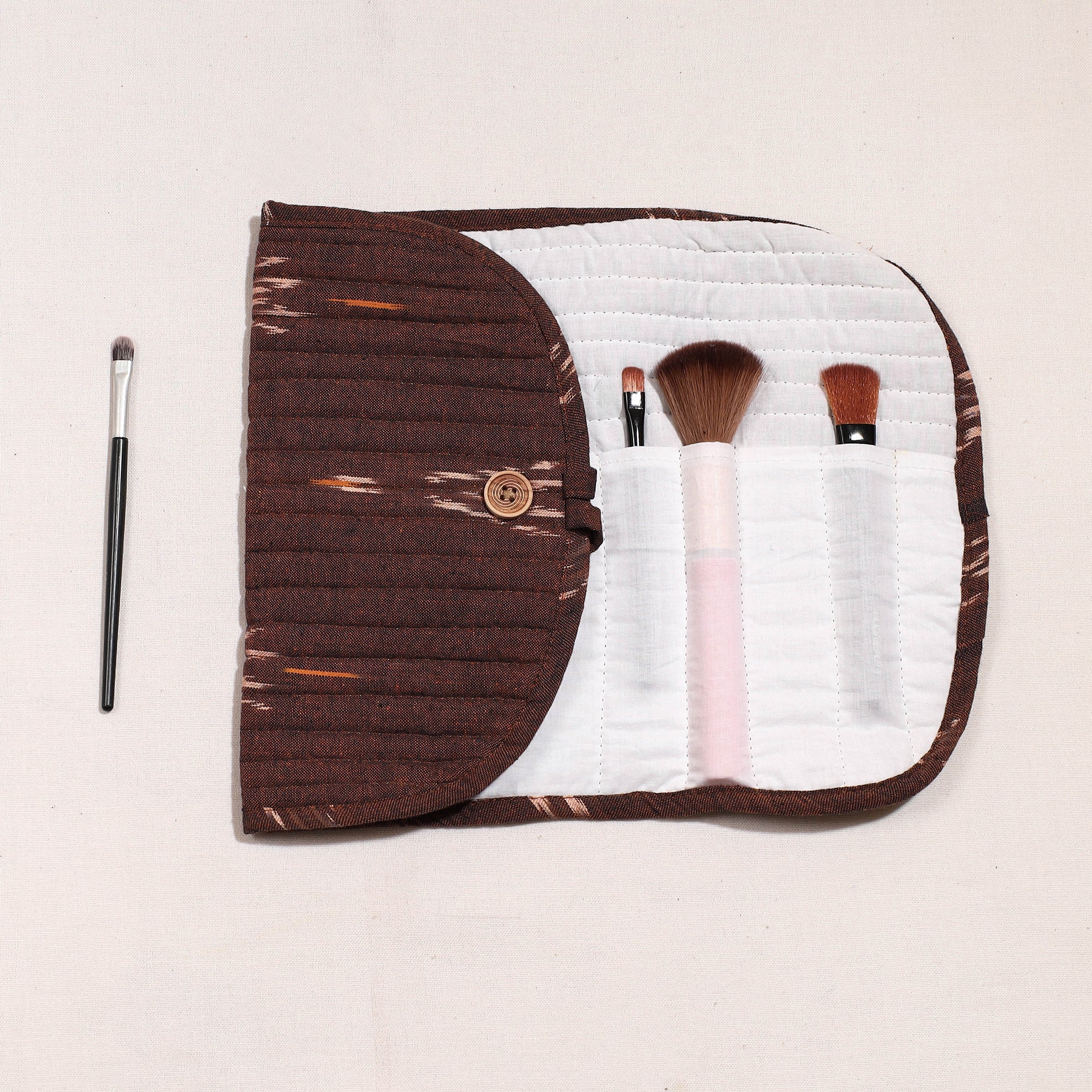 Handcraftedikat cotton multipurposesegmentedmakeup brush wrap pouch/storage organizer with multiple compartments for convenient and stylish organization of your beauty tools.