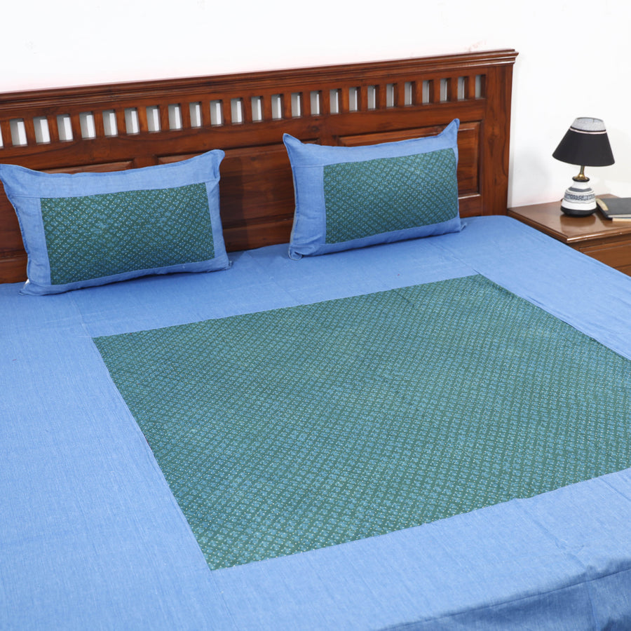 Elevate your bedroom aesthetics with our exquisite plain cotton double bedcover, featuring intricate block print patchwork, and accompanied by matching pillow covers. Crafted from high-quality cotton, it offers comfort and style. This enhancing your sleep space with a touch of elegance. Perfect for indulging in luxurious relaxation while adding a fashionable flair to your home decor.