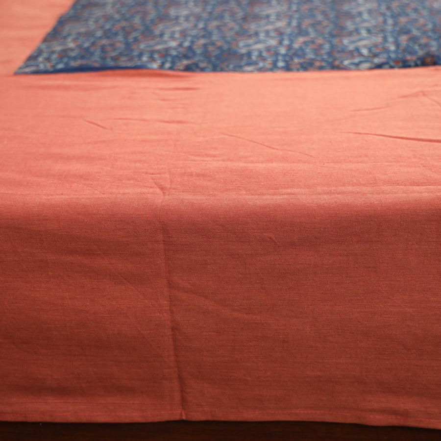 Orange - Plain Cotton Double Bed Cover with Block Print Patchwork (94 x 89 In)