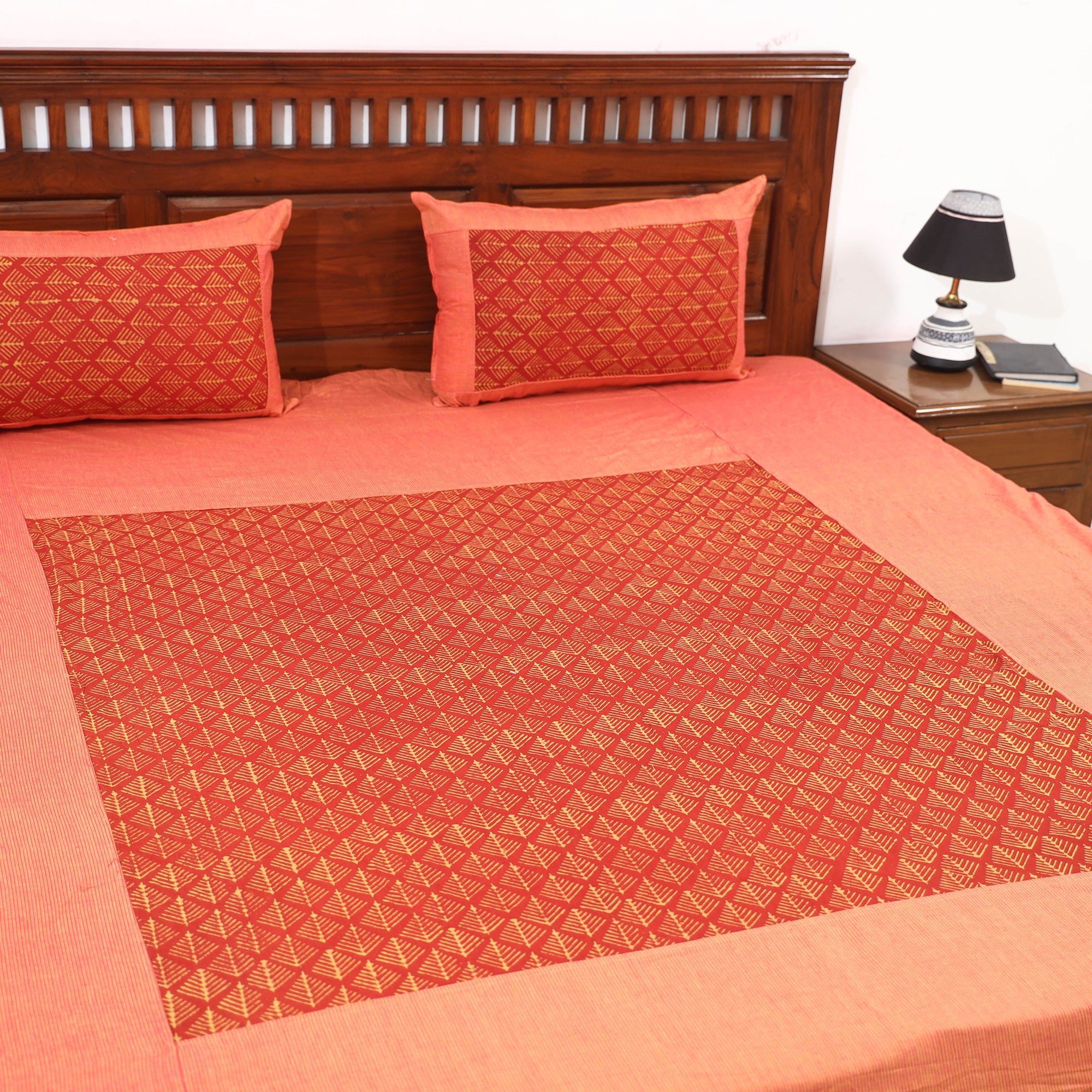Elevate your bedroom aesthetics with our exquisite plain cotton double bedcover, featuring intricate block print patchwork, and accompanied by matching pillow covers. Crafted from high-quality cotton, it offers comfort and style. This enhancing your sleep space with a touch of elegance. Perfect for indulging in luxurious relaxation while adding a fashionable flair to your home decor.