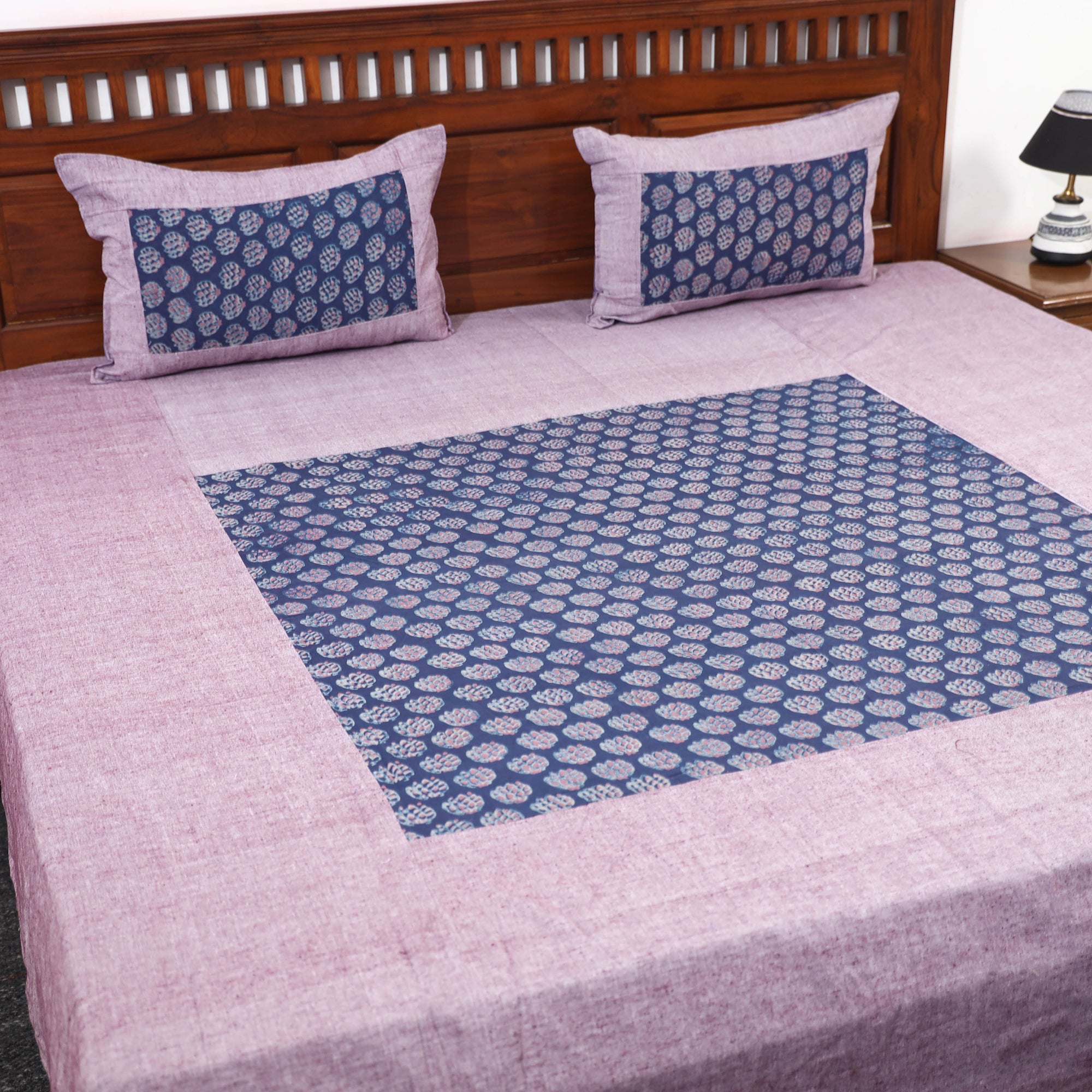 Elevate your bedroom aesthetics with our exquisite plain cotton double bedcover, featuring intricate block print patchwork, and accompanied by matching pillow covers. Crafted from high-quality cotton, it offers comfort and style. This enhancing your sleep space with a touch of elegance. Perfect for indulging in luxurious relaxation while adding a fashionable flair to your home decor.