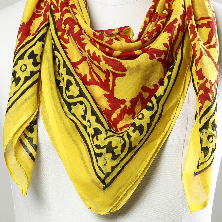 | Material | Elevate your style with our exquisite yellow bagru hand block printed mul cotton scarf, a testament to traditional craftsmanship from Bagru, Rajasthan. This stole is made using natural dyes through the traditional mud resist process by using hand carved wooden block. This versatile scarf complements any outfit, adding a touch of heritage to your wardrobe. |