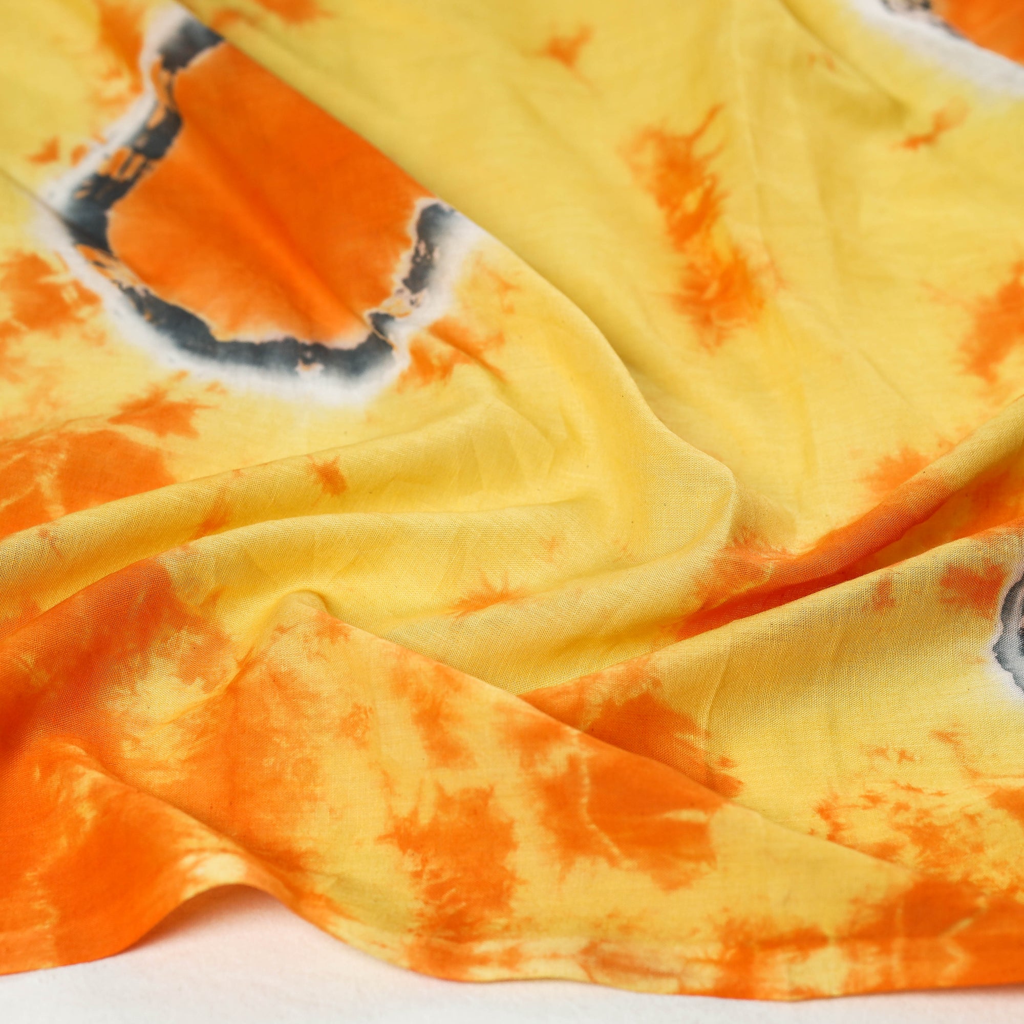 Elevate your style with our exquisite yellow shibori tie-dye mul cotton scarf from Jaipur, Rajasthan. This scarf is hand dyed using shibori tie and dye technique in which the fabric is tied using clamp or stitches in the required design and the pattern is dyed. Crafted with bleed-free vat dyes, it adds a vibrant touch to any ensemble. Perfect for enhancing everyday outfits or as a statement piece for special occasions.