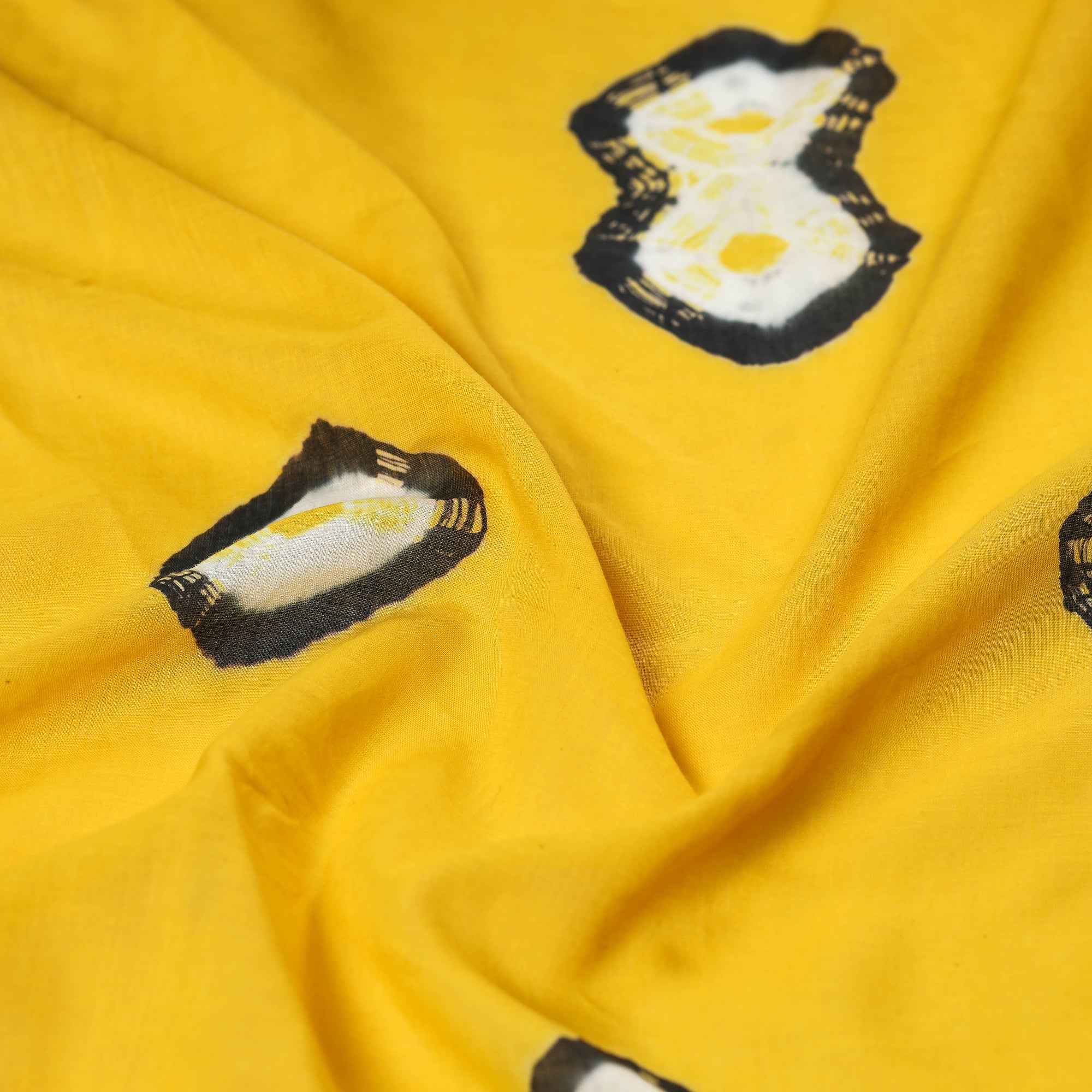 Elevate your style with our exquisite yellow shibori tie-dye mul cotton scarf from Jaipur, Rajasthan. This scarf is hand dyed using shibori tie and dye technique in which the fabric is tied using clamp or stitches in the required design and the pattern is dyed. Crafted with bleed-free vat dyes, it adds a vibrant touch to any ensemble. Perfect for enhancing everyday outfits or as a statement piece for special occasions.