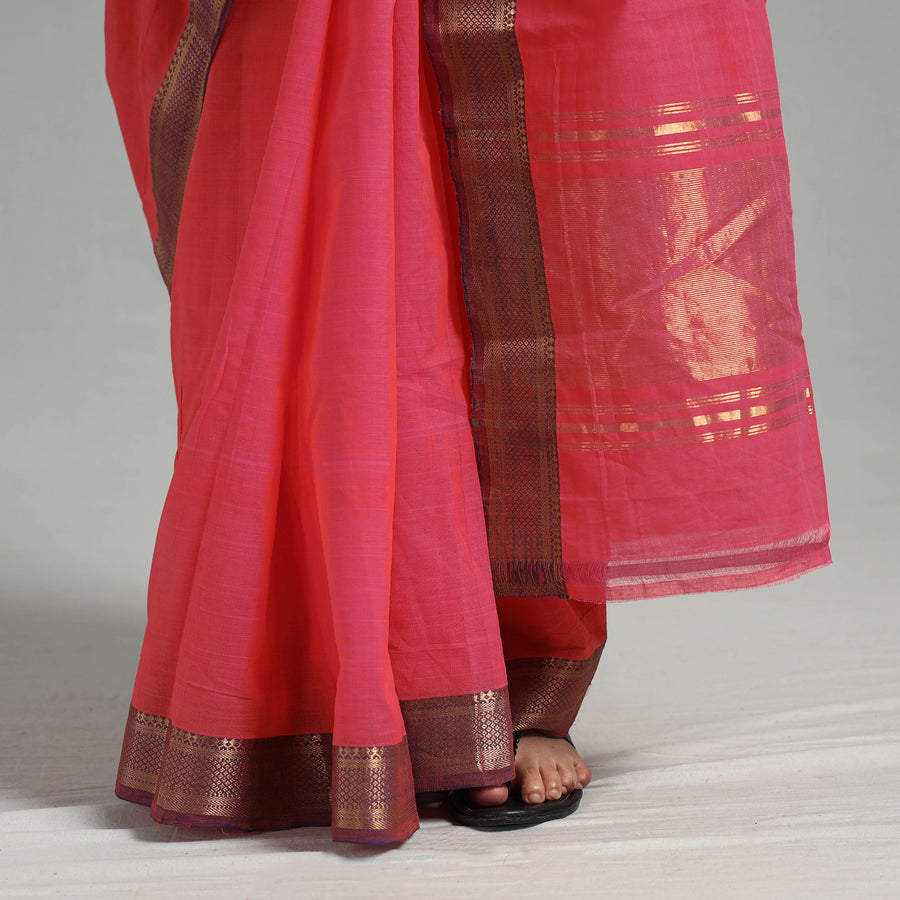 Fine quality mangalagiri handloom cotton saree with zari border, that showcases beautiful handloom texture from Andhra Pradesh. Mangalagiri sarees are known for their intricate and rich designs that are simple yet classy. The cotton sarees of Mangalagiri are quite popular among the South Indian women, with the border designs adding a charming elegance.